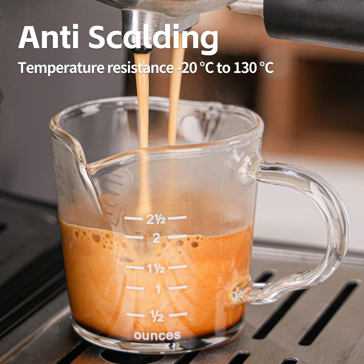 Espresso Shot Glass 70ML/2.3OZ Triple Pitcher Barista Double Spouts With Pouring Handle (1 Pack)