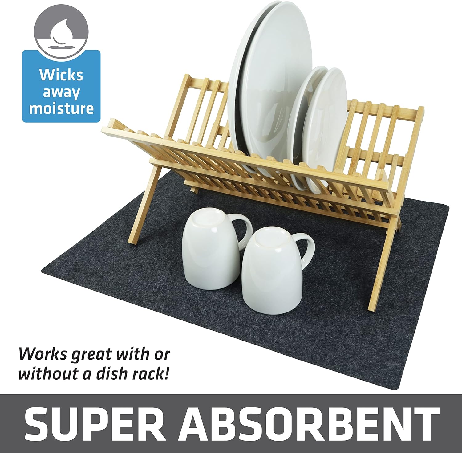 Drymate XL Dish Drying Mat, Oversized (19”x24”), Low-Profile, Super Absorbent, Quick Dry Fabric, Waterproof & Slip-Resistant, for Kitchen Counter, Trimmable, Easy to Clean (USA Made)(Charcoal)