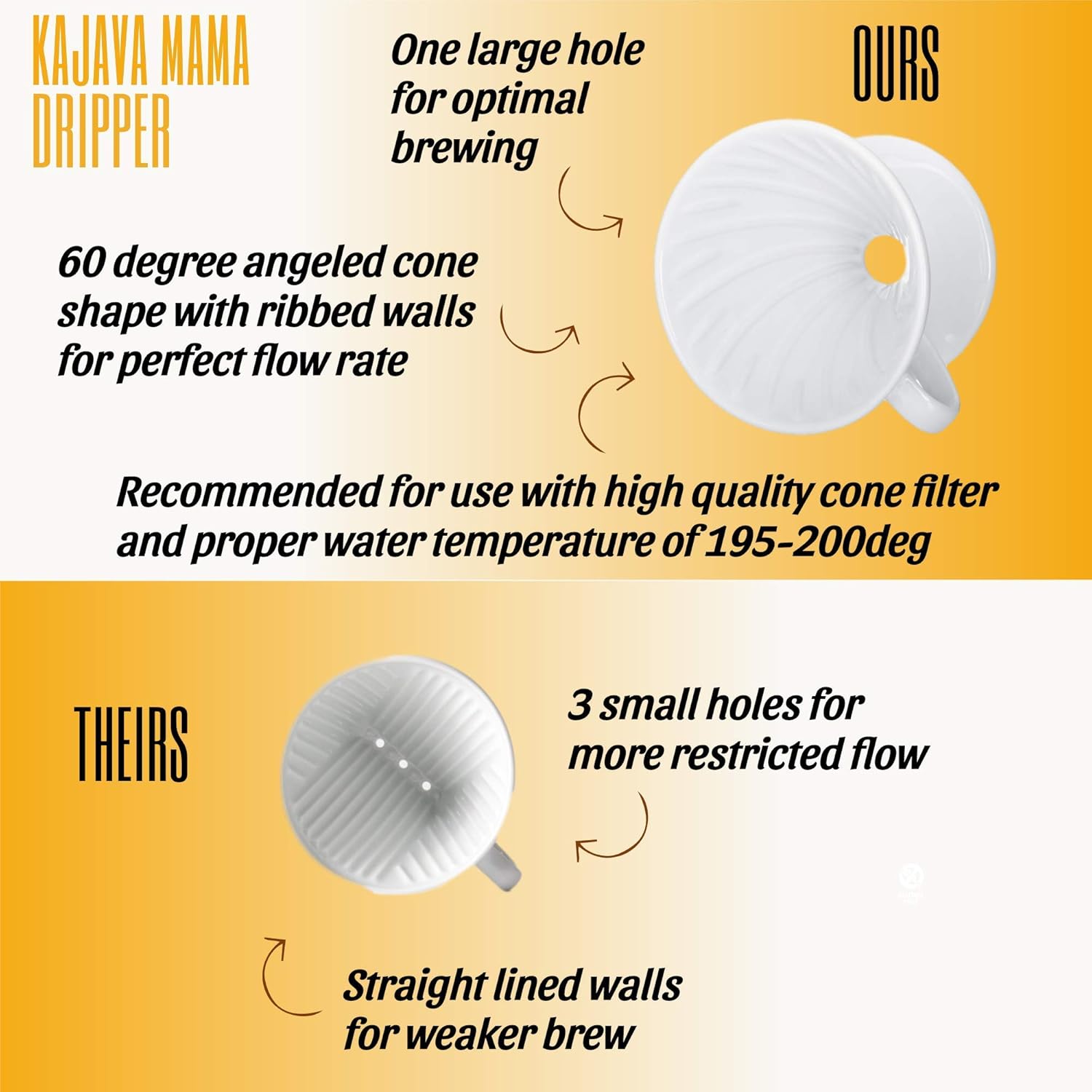 - ☕️TOUGH & SLEEK DESIGN - Made of premium, smooth ceramic. This material not only looks great, but also helps maintain the water temperature needed for every step of the brewing process.