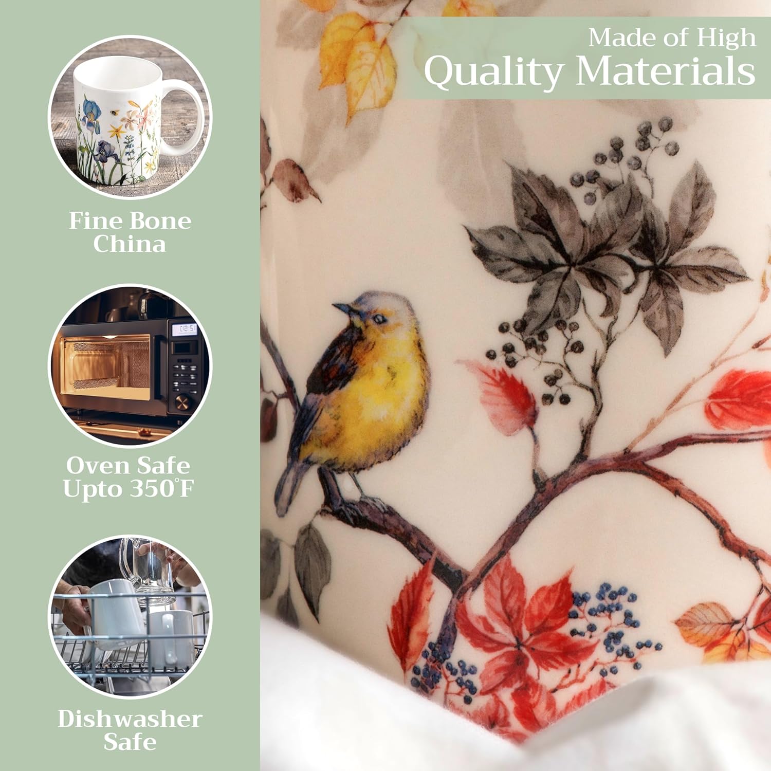 - Easy Care & Maintenance: Microwave, dishwasher, and oven safe up to 350°F. These bone china mugs are built for convenience and durability, making cleanup and reheating simple without compromising on quality