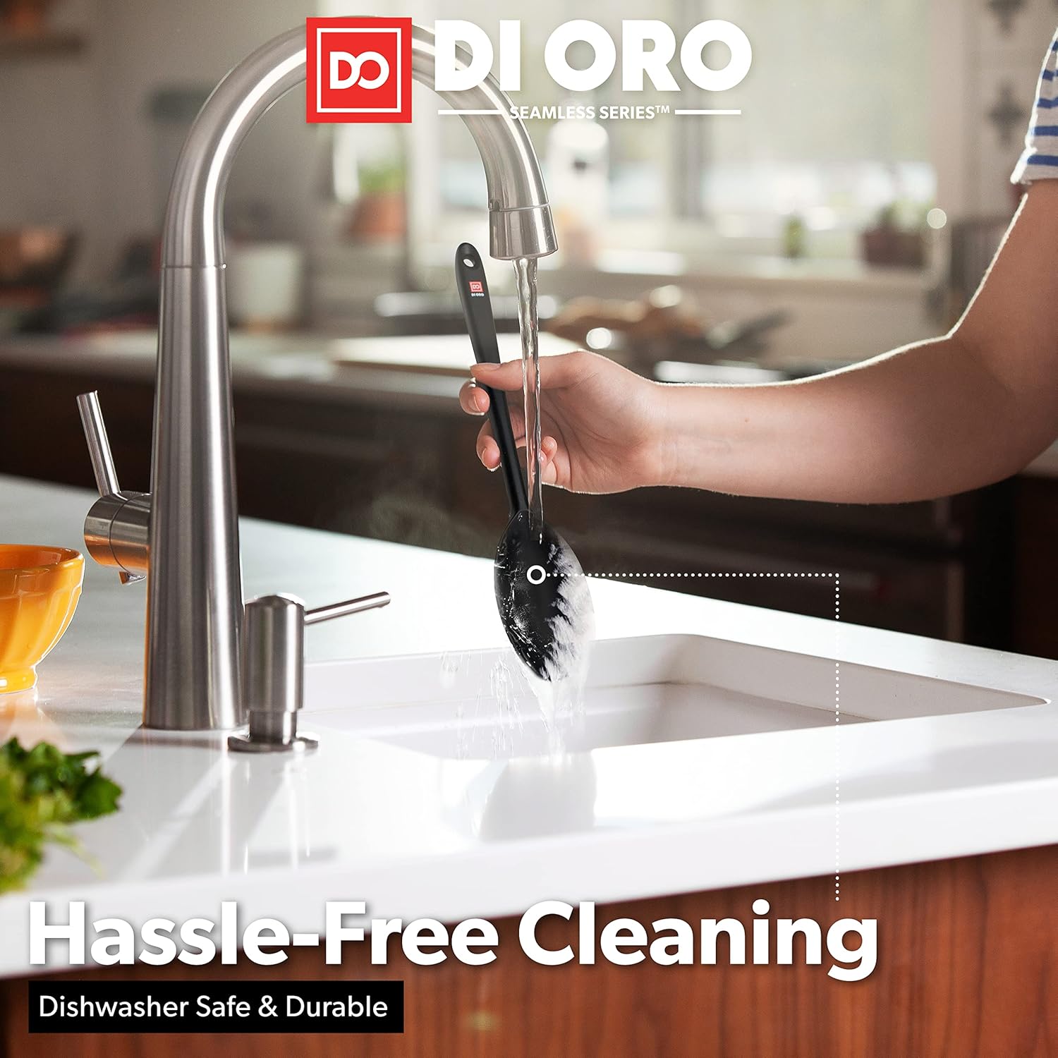 - ONLY THE BEST – By popular demand, we have added a 2-Piece Silicone Spoon Set to our Award-Winning Seamless Series line of kitchen utensils. The DI ORO Seamless Series Slotted and Solid Spoons are made with food grade, BPA Free, and LFGB Certified Silicone. Built to withstand the heat, these essential kitchen tools are heat-resistant up to 600°F, which means you will never melt your favorite spoons.