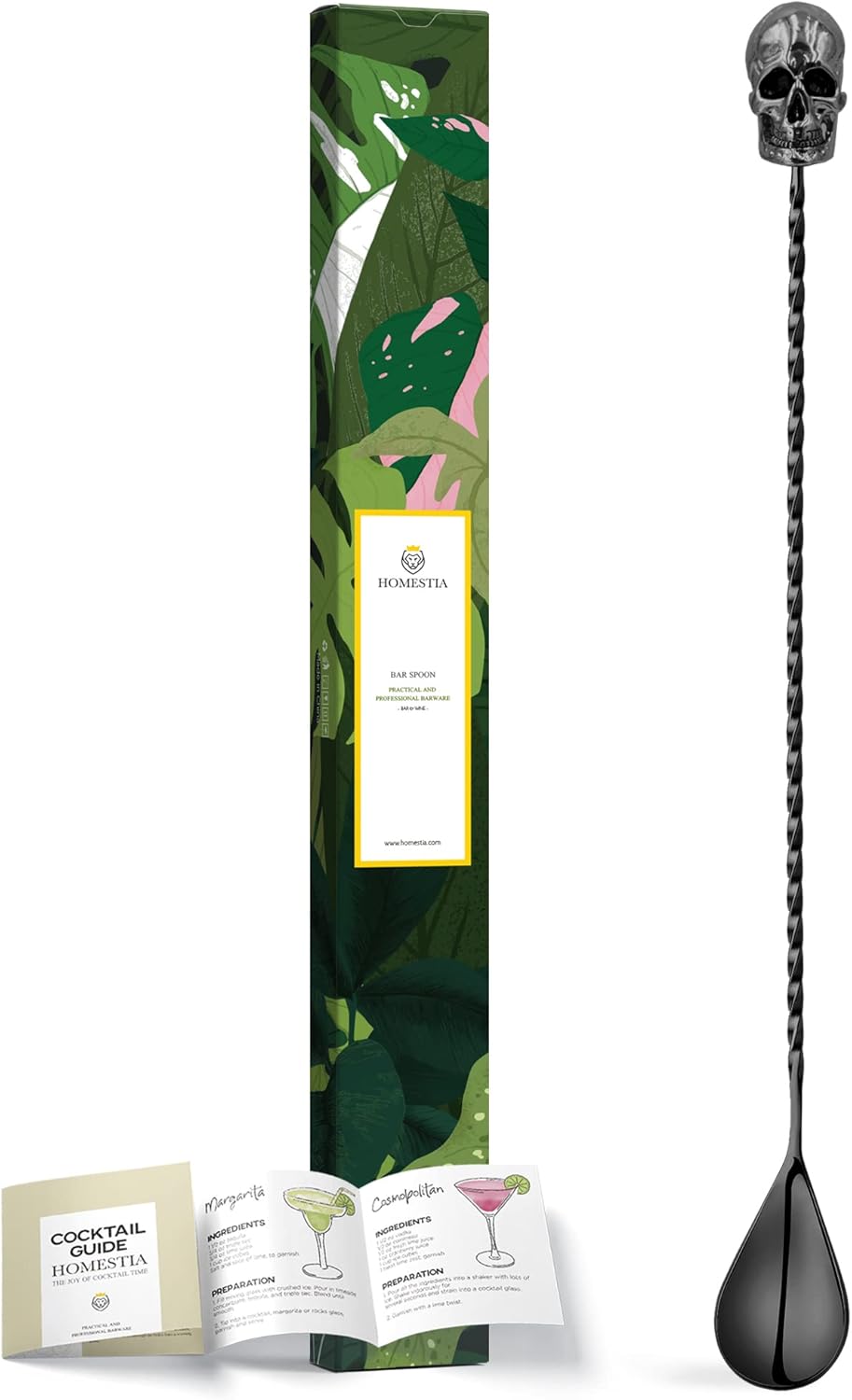 Homestia 12-Inch Skull Bar Spoon, 304 Stainless Steel Cocktail Spoon for Layering Long Spiral Handle Mixing Spoon Stirrers for Drink Black