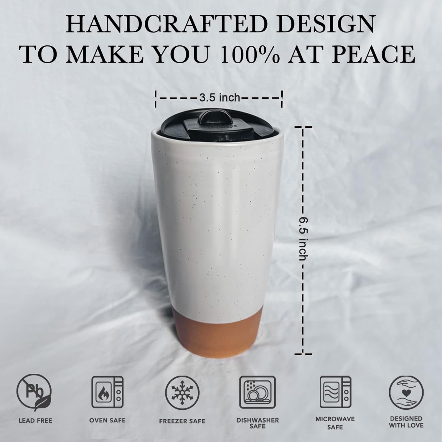 Mora Double Wall Ceramic Coffee Travel Mug with Lid, 14 oz, Portable, Microwave, Dishwasher Safe, Insulated Reusable Tall Cup, Splash Resistant Lid - To Go Tumbler for Car Cup Holder, Cotton White