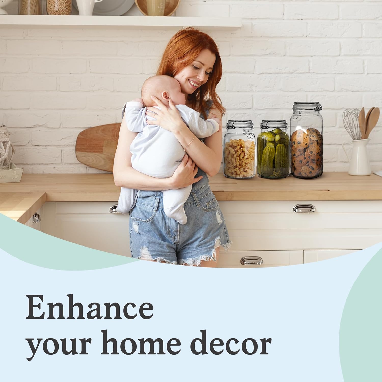 Set of 3 Glass Mason Jar with Airtight Lid 50 Ounces | Glass Storage Container for Food, Flour, Pasta, Coffee, Candy, Dog Treats, Snacks