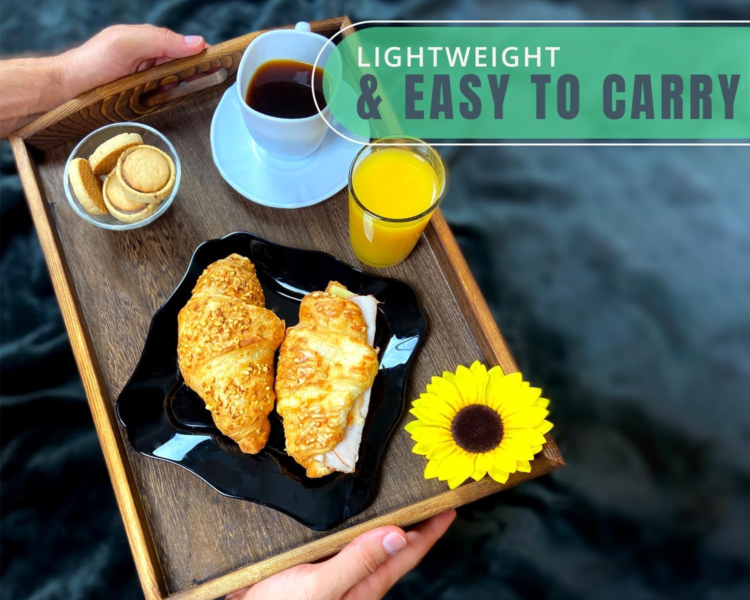 - Convenient dimensions: Measuring around 16.5” Wide and 12” Length for the larger tray, 14.6” Wide and 10.37” Length for the medium tray, and 12.6” Wide and 8.87” Length for the smallest tray, they are Perfect for serving guests drinks and appetizers, breakfast-in-bed or for decorating your coffee table.