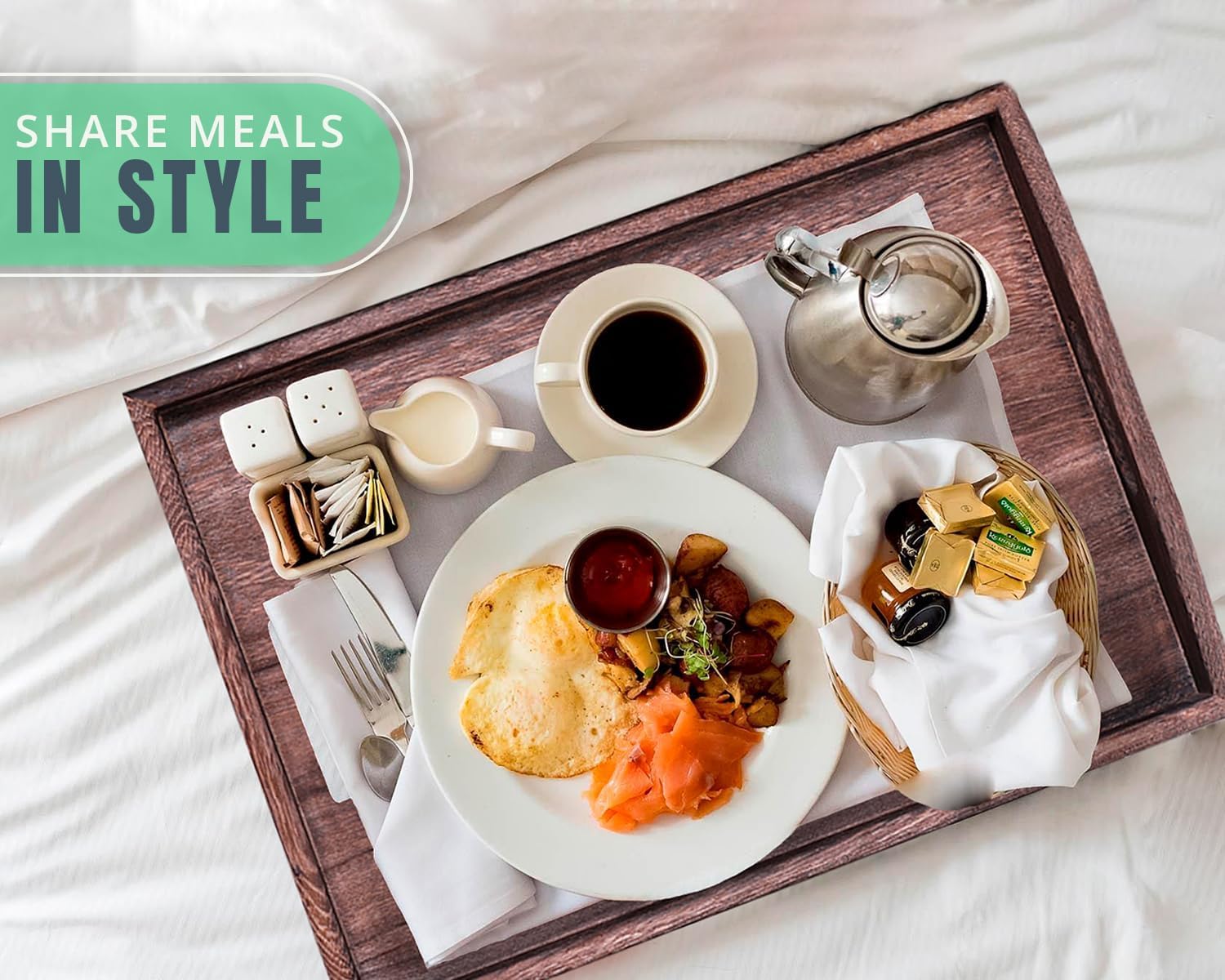 Serving Trays Set of 3 - Ottoman Wood Trays for Entertainment, Food and Décor - Rustic Farmhouse Distressed Finish - Stained Wood Brown