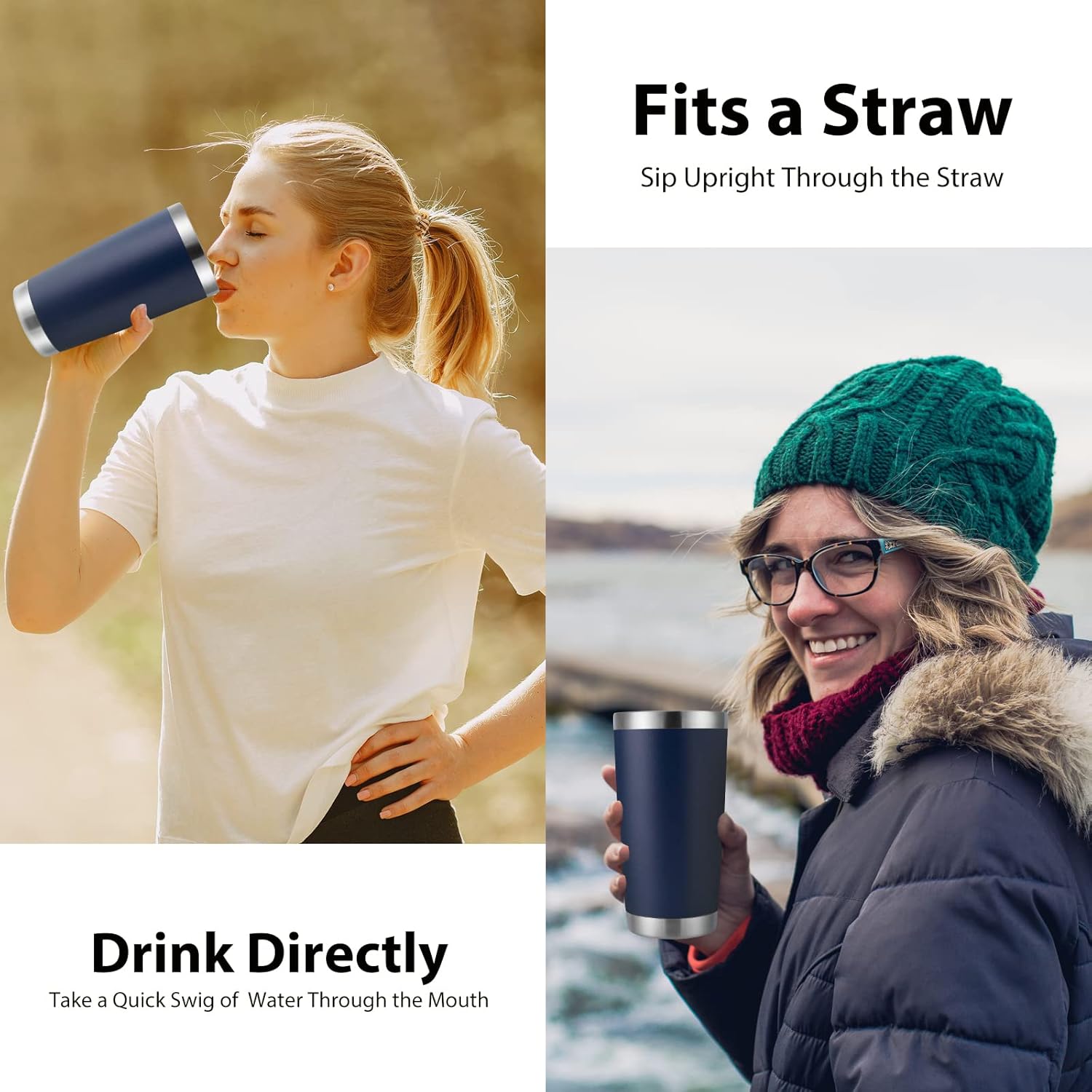 DOMICARE 20oz Stainless Steel Tumbler Bulk with Lid, Double Wall Vacuum Insulated Travel Mug, Powder Coated Coffee Cup (Powder Navy, 8)
