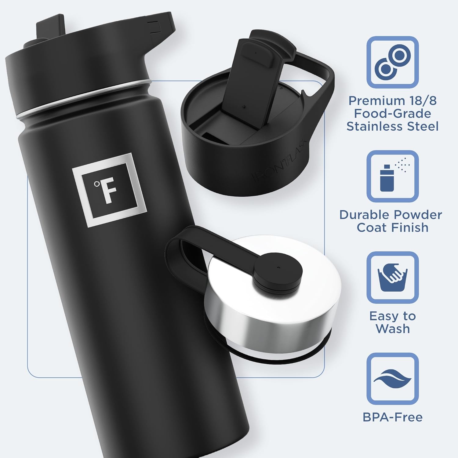 - INSULATED SPORTS WATER BOTTLE: Goodbye sweat! The double wall insulation makes the Iron Flask sweat-free! It keeps your drink COLD for up to 24 hours, and HOT for up to 12 hours. *NOTE: ONLY the 14 Oz, 18 Oz, & 22 Oz fit in cupholders*