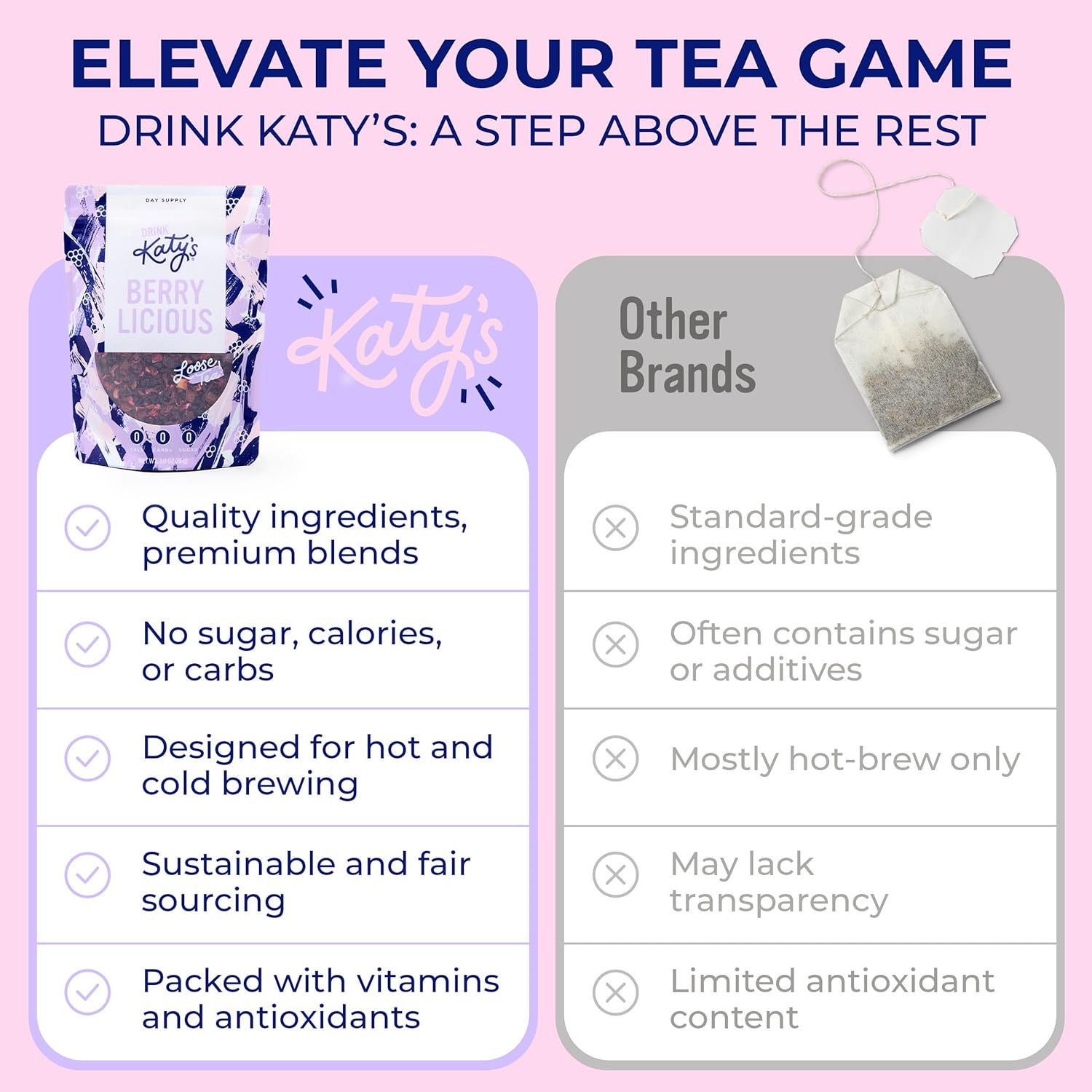 Katy’s® Berrylicious Loose Leaf Tea | Hibiscus, Blueberry & Cranberry | Fruity Herbal Tea | Caffeine-Free Fruit Tea | Cold Brew or Hot | 30+ Cups | Antioxidant-Rich | Woman-Owned | 3oz Pouch