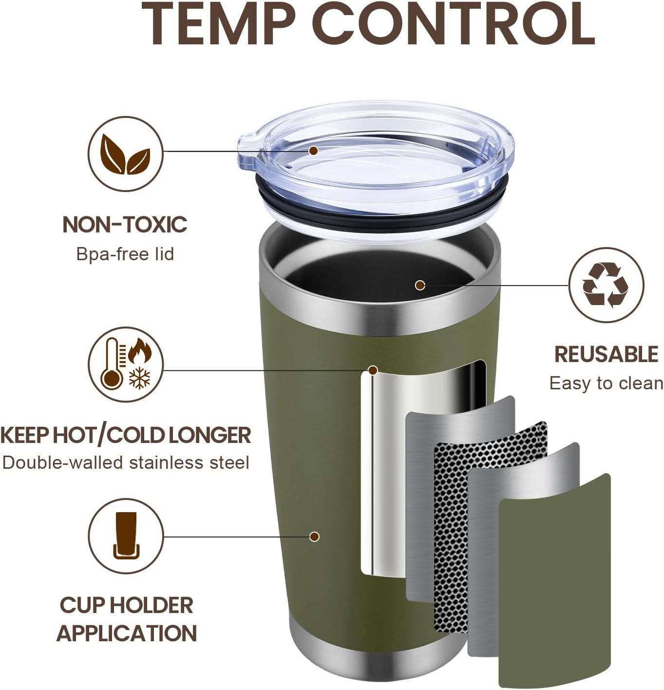MEWAY 20oz Tumbler 12 Pack Double Wall Vacuum Insulated Travel Mug Bulk, Stainless Steel Tumblers with Lid and Straw, Durable Powder Coated Coffee Cups for Cold & Hot Drinks (Army Green, 12)
