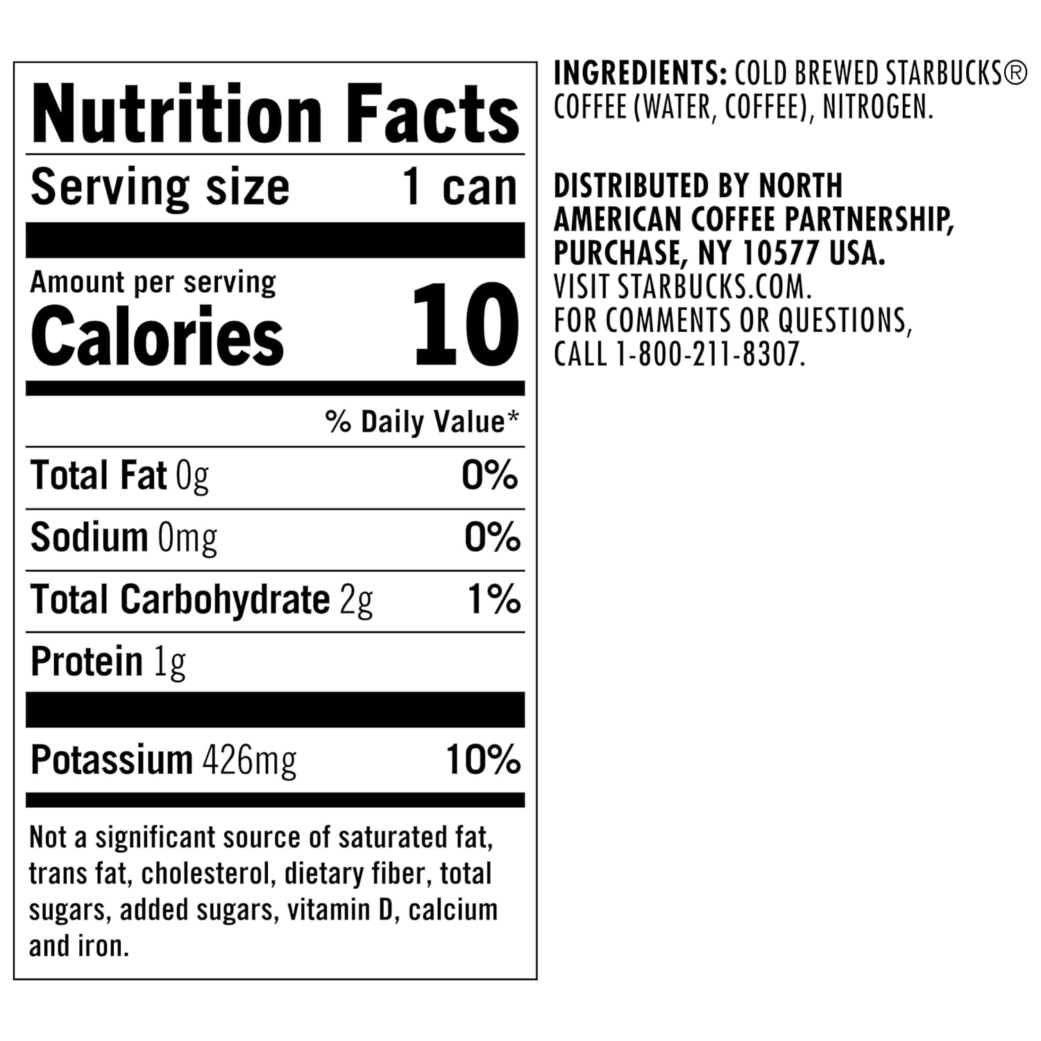 - Starbucks Nitro Cold Brew Iced Coffee: Our cold brew coffee is infused with nitrogen from the moment you open it, creating a rush of creamy texture and velvety smooth taste.