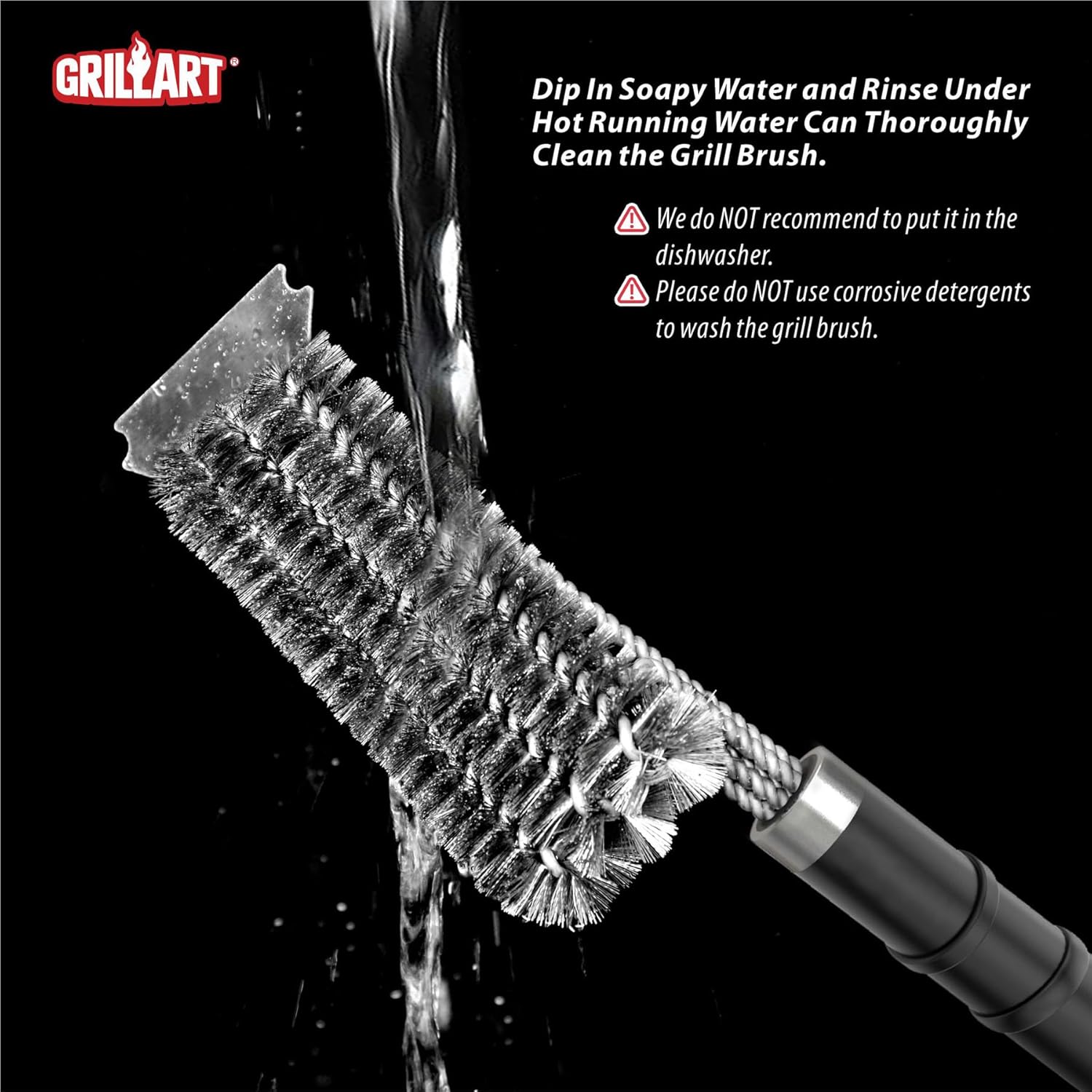GRILLART Grill Brush and Scraper,18 Inch BBQ Grill Cleaning Brush Kit, Safe Wire Scrubber, Universal Fit BBQ Cleaner Accessories for All Grates