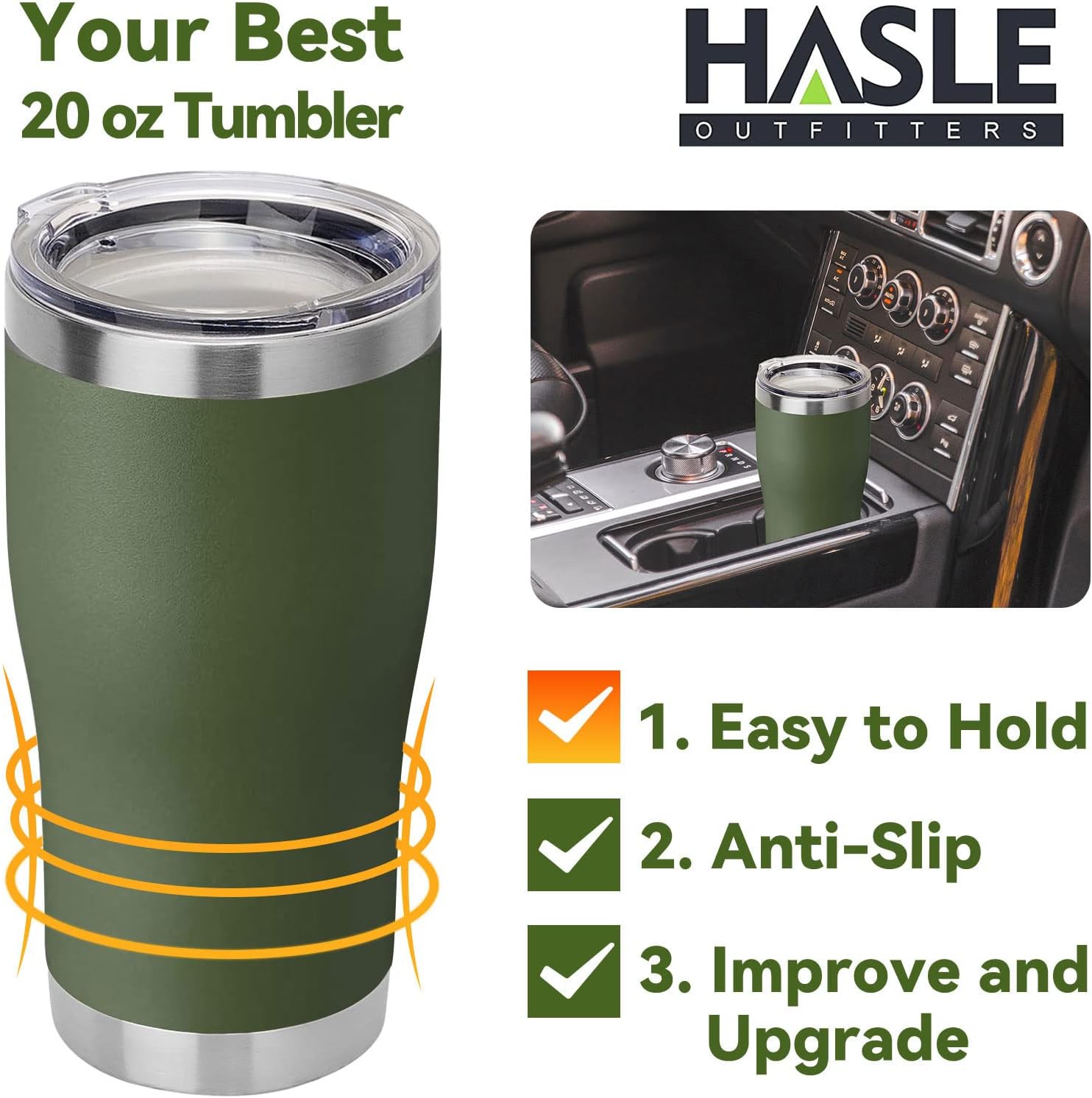 HASLE OUTFITTERS 20 oz Tumbler Bulk, Stainless Steel Tumblers with Lid, Vacuum Insulated Tumbler, Double Wall Powder Coated Cup, coffee mugs, Army Green, 12 Pack