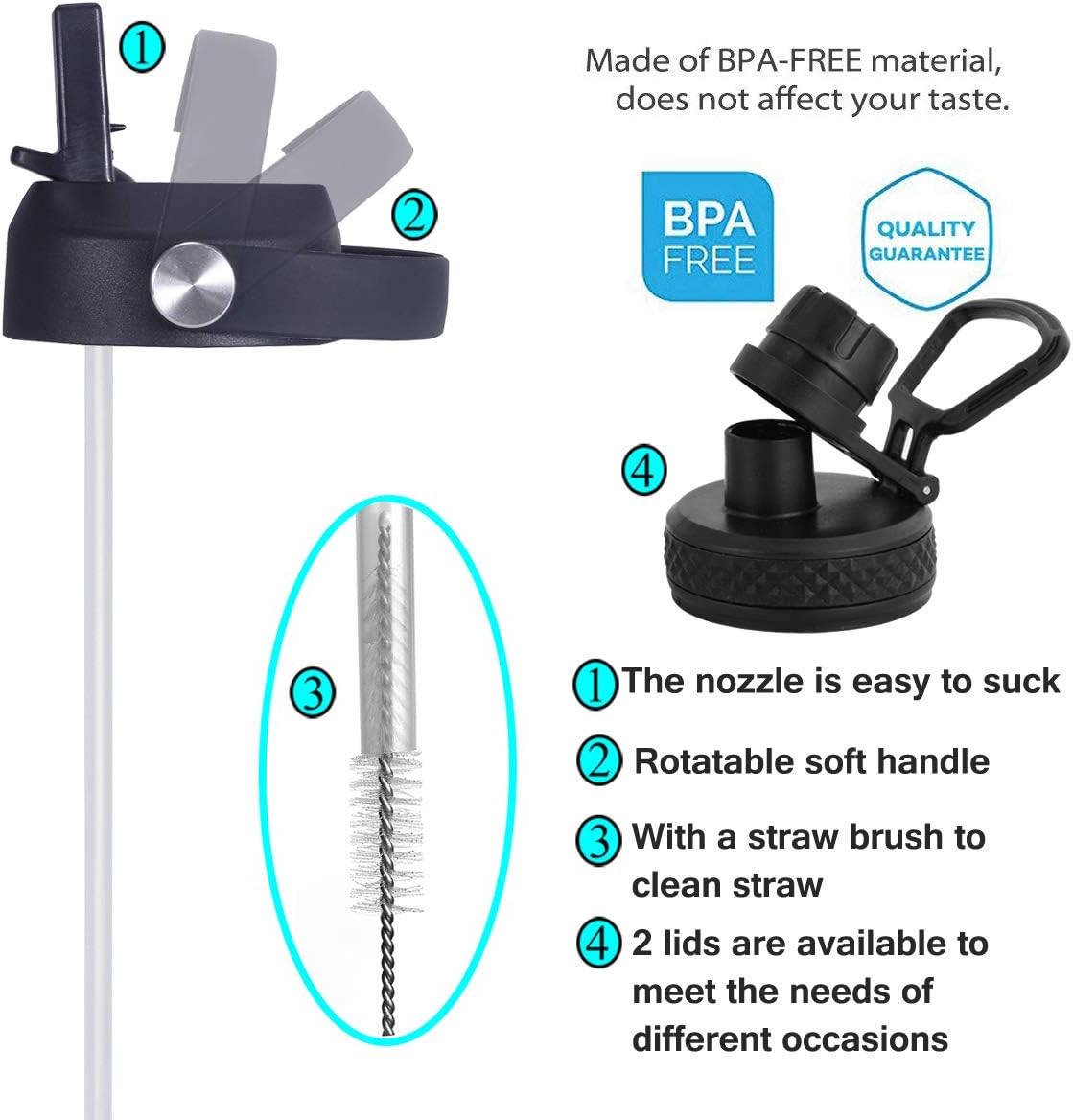 - ❤【2 Lids Available】- The wide mouth makes it easy to clean, and the BPA-free lid. The two lids can be switched at any time - the Spout Lid is perfect for the beach and camping, while the flex straw lid is suitable for cycling and road trips.