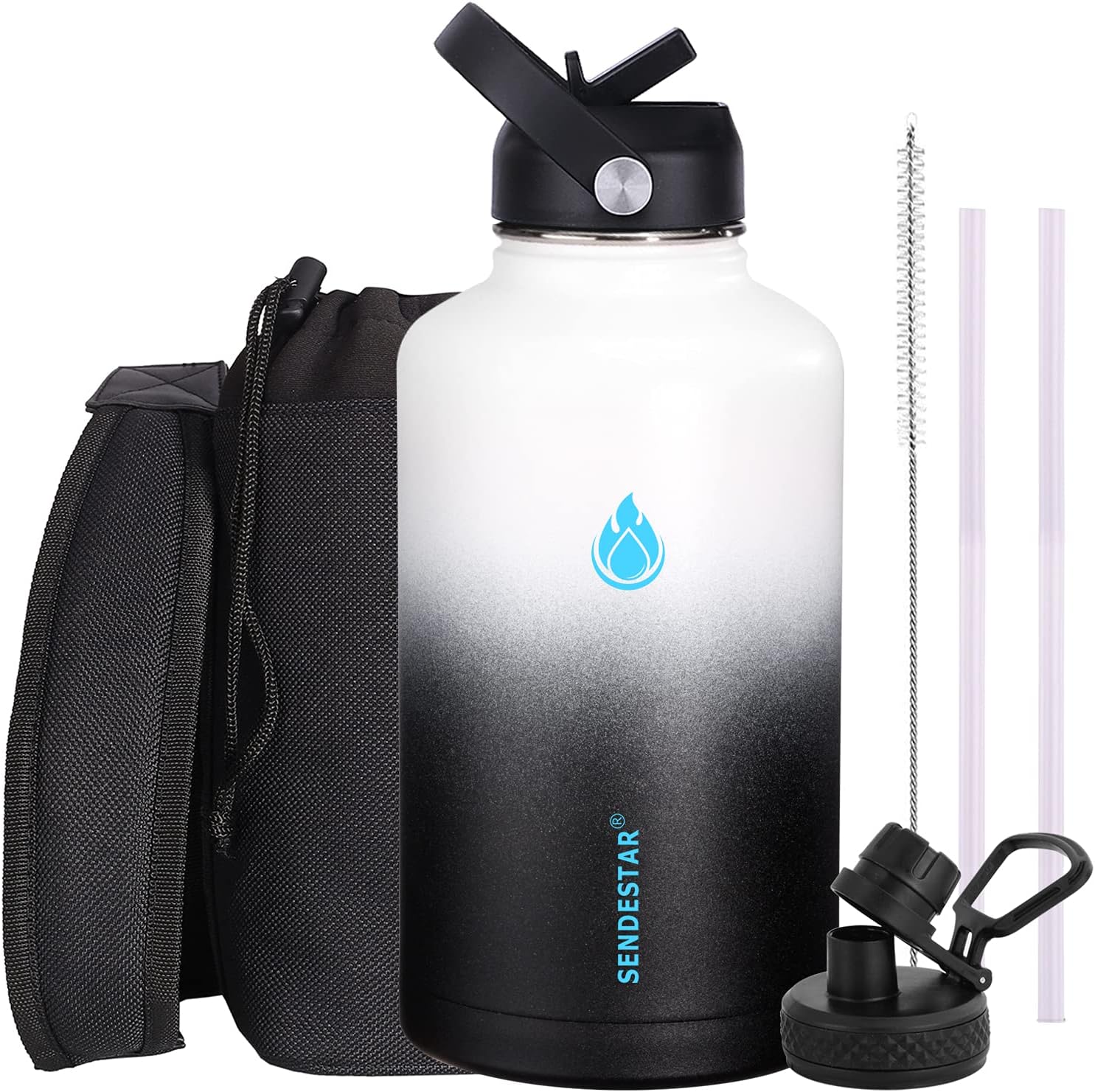 SENDESTAR Water Bottle 64oz Double Wall Vacuum Insulated Leak Proof Stainless Steel Sports Water Bottle—Wide Mouth with New Flex Straw Lid & Spout Lid (Day&Night)