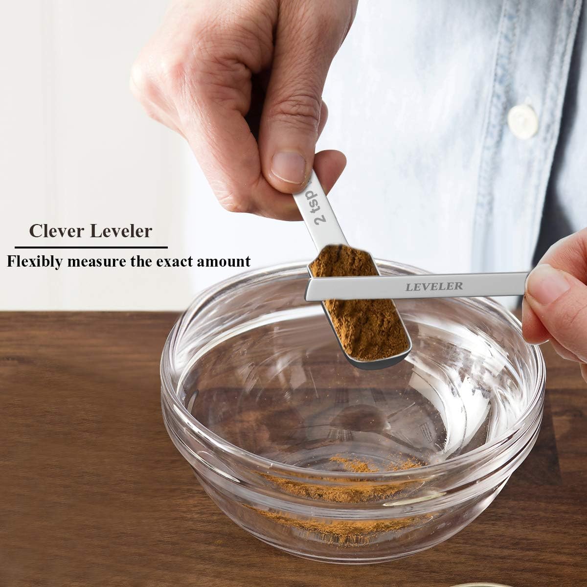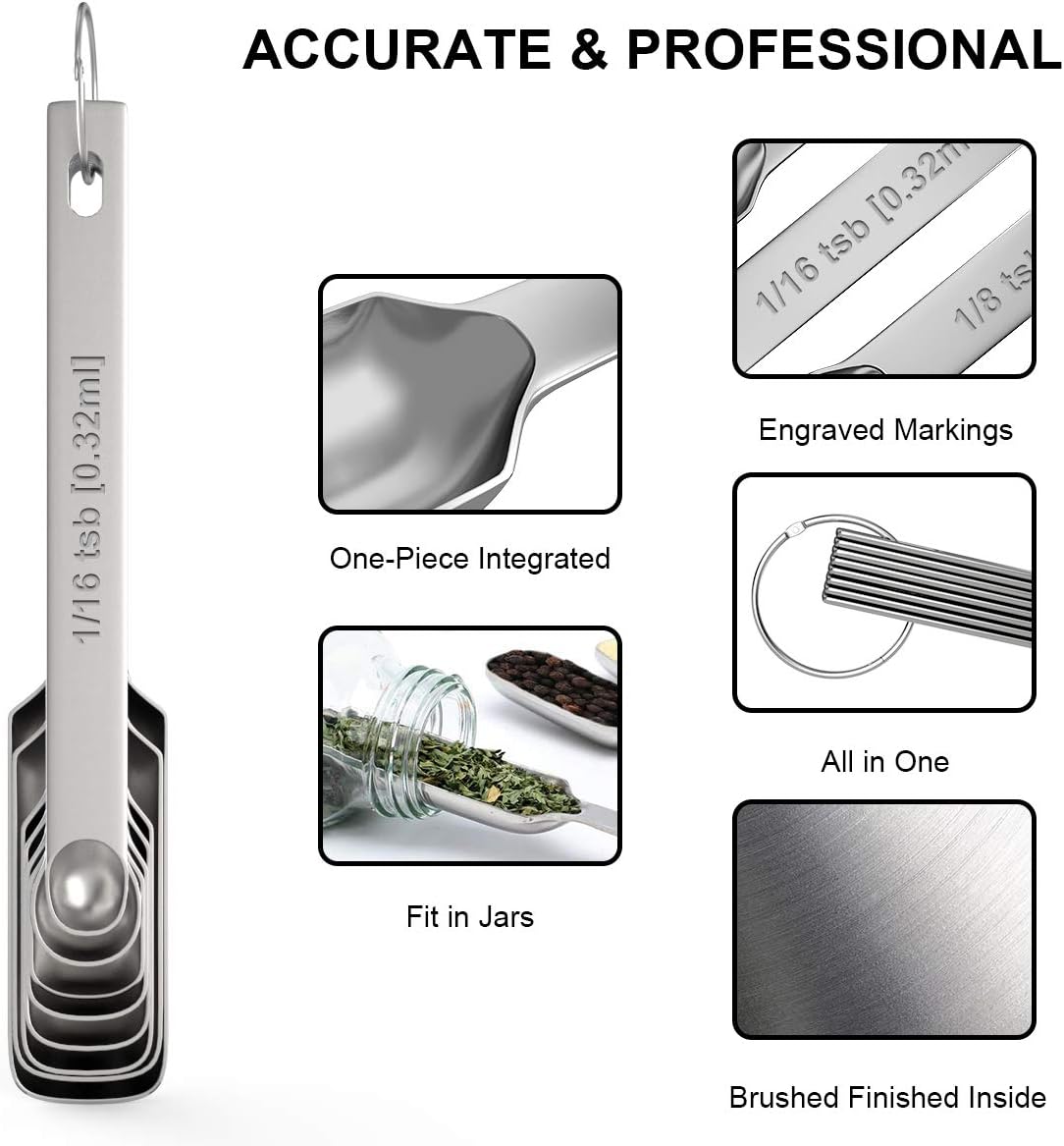 - SET OF 21: This package includes 7 Measuring Cups (1/8 cup, 1/4 cup, 1/3 cup, 1/2 cup, 2/3 cup, 3/4 cup, 1 cup), 8 Measuring Spoons (1/16 tsp, 1/8 tsp, 1/4 tsp, 1/2 tsp, 3/4 tsp, 1 tsp, 2 tsp, 1 tbsp), 1 Leveler & 5 Mini Measuring Spoons (Tad, Dash, Pinch, Smidgen, Drop), various sizes meet all your baking needs