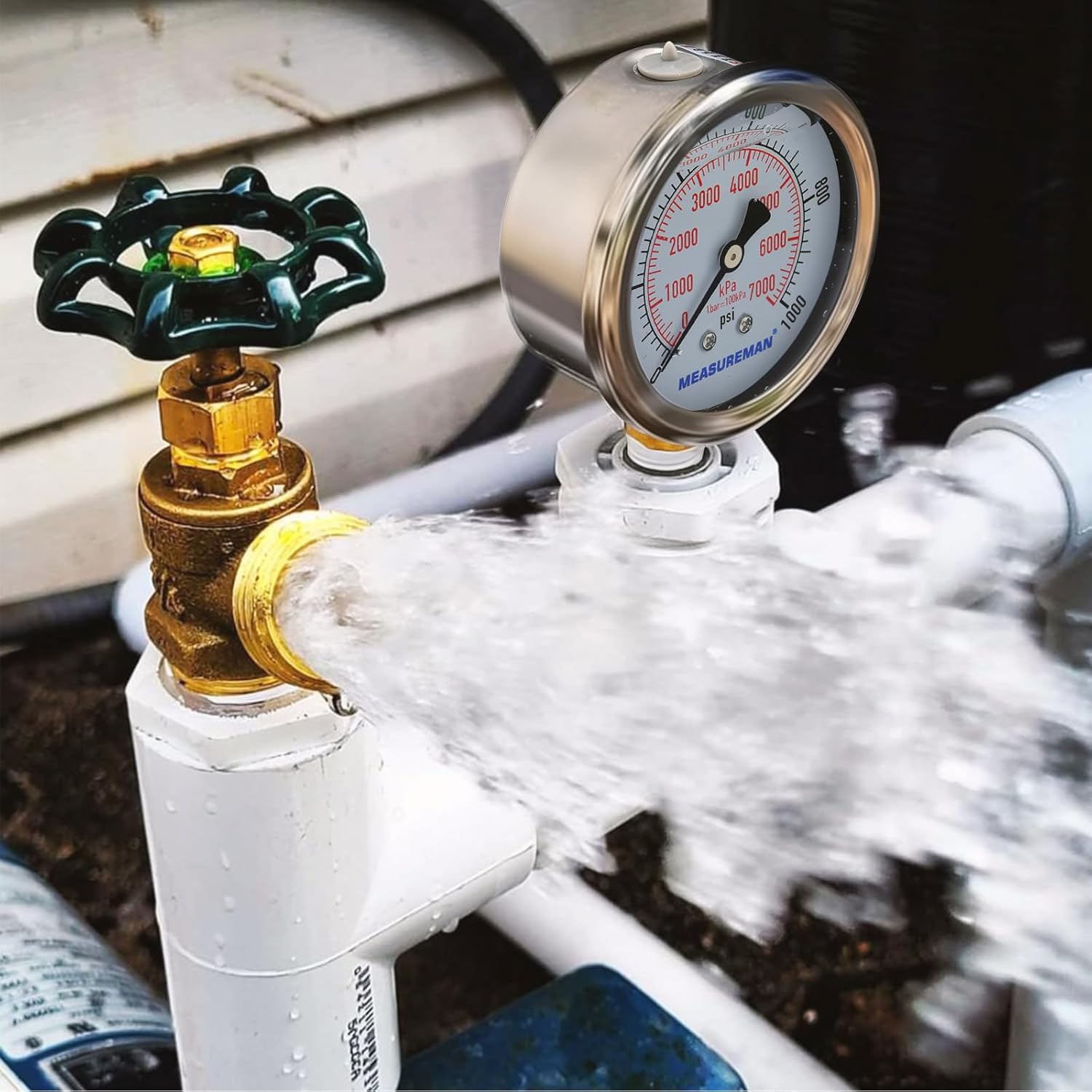 MEASUREMAN 2-1/2inch Dial Size, Liquid Filled Pressure Gauge, 0-1000psi/7000kpa, 304 Stainless Steel Case, 1/4inchNPT Lower Mount