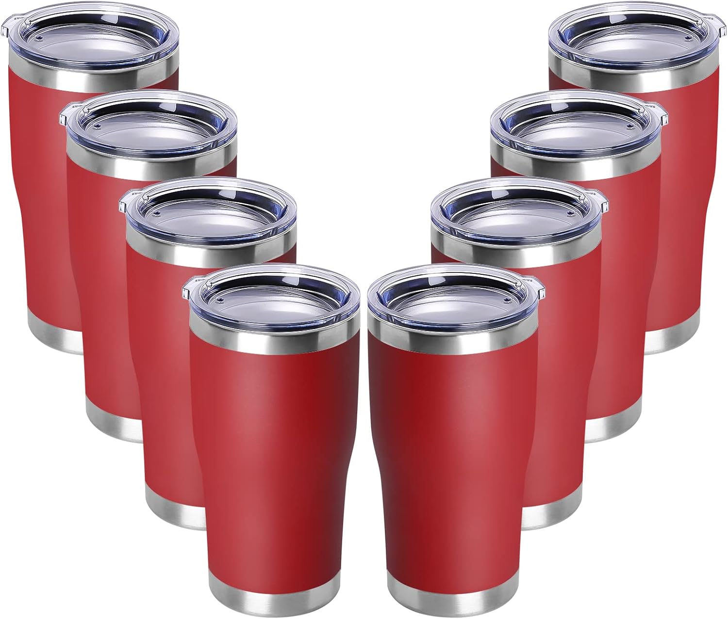 DOMICARE 20oz Tumbler with Lid Stainless Steel Tumblers Bulk, Double Wall Vacuum Insulated Coffee Travel Mug Powder Coated Tumbler, 8 Pack Red