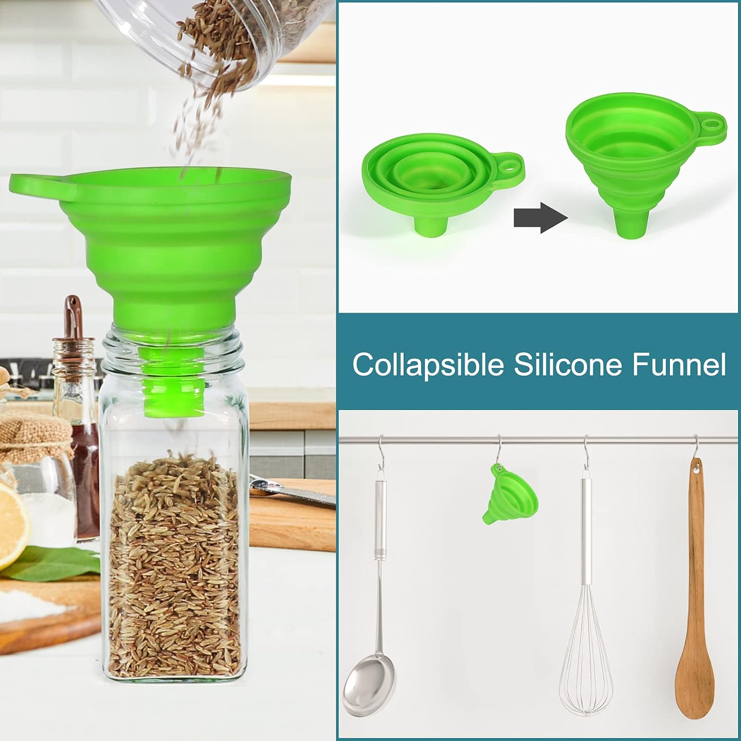 - BLANK SPICE JAR LABELS AND FUNNEL : 120 Blank Black Labels for Spice Jar and reusable for you to fill in with a chalk Marker and wipe clean as needed! The Silicone Collapsible funnel specially designed for spice makes it easier to add new spices to your empty spice bottles
