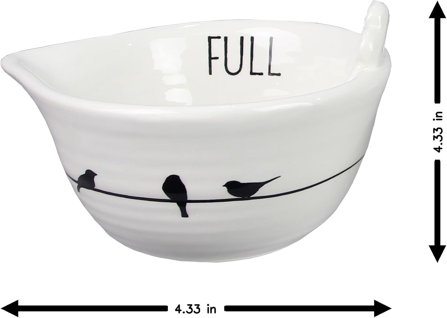 Youngs 21219 Ceramic Bird Design Measuring Cups, Set of 4, Black and White