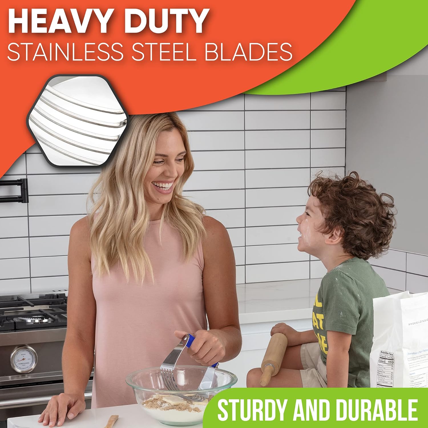 Spring Chef Large Dough Blender For Baking, Stainless Steel Puff Pastry Cutter Tool with Sharp & Thick Blades, Dishwasher Safe Dough Cutter Tool, Manual Pastry Blender for Easy Mixing - Sapphire