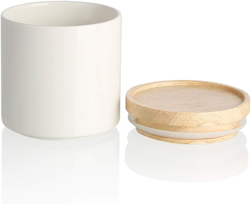 Sweejar Kitchen Canisters Ceramic Food Storage Jar, Stackable Containers with Airtight Seal Wooden Lid for Serving Ground Coffee, Tea, Sugar, Salt and More - 16 Fl Oz (White)