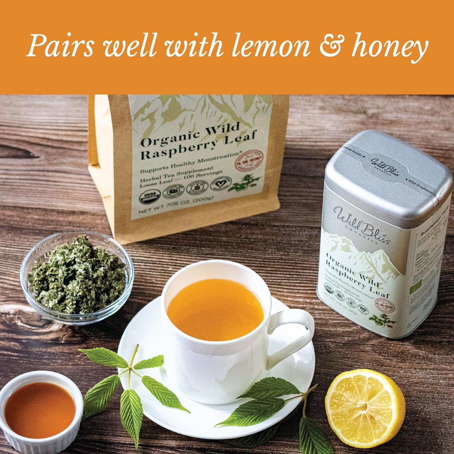 Wild Bliss Organic Red Raspberry Leaf Tea Pregnancy and Menstrual Support - Loose Leaf Herbal Tea - 1.76 Oz - 25 Servings