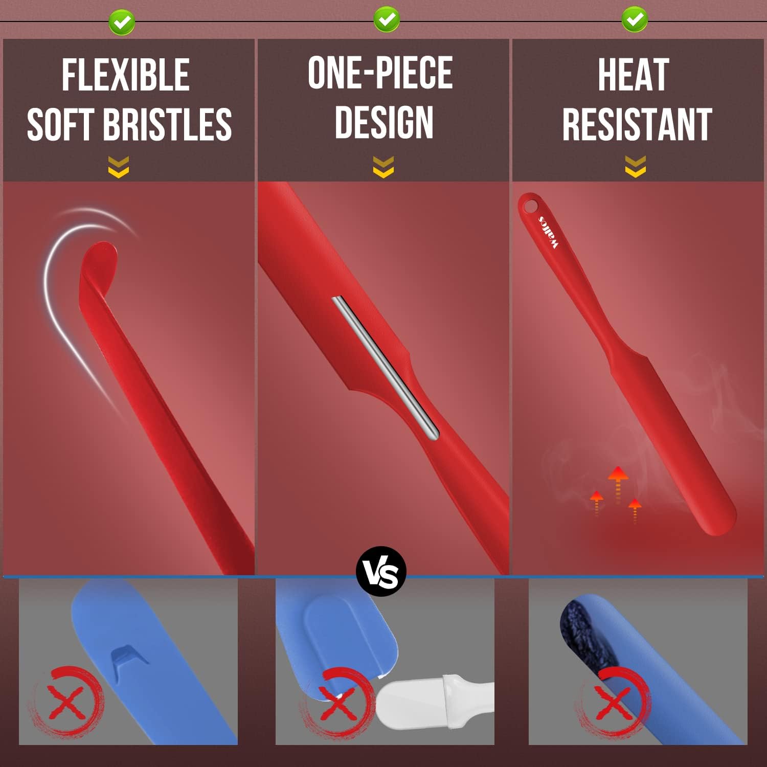 - 【An Internal Stainless Steel Core lechnology】The strong stainless steel won't break easy like cheap plastic spatula. WALFOS spatula can hold up to the demanding use of home cooks, continue to perform day after day.