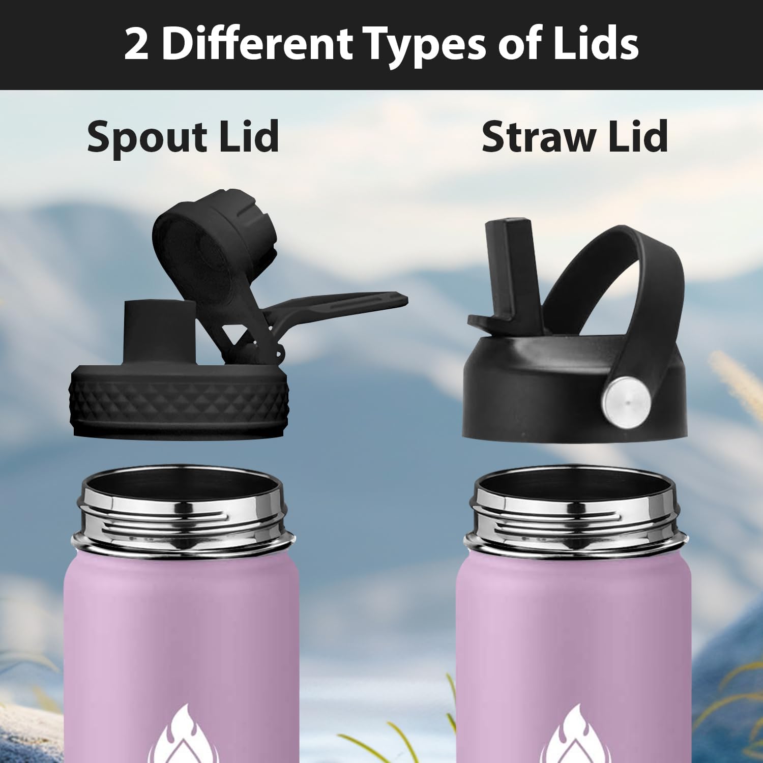 - ❤【2 Lids Available】- The wide mouth makes it easy to clean, and the BPA-free lid. The two lids can be switched at any time - the Spout Lid is perfect for the beach and camping, while the flex straw lid is suitable for cycling and road trips.