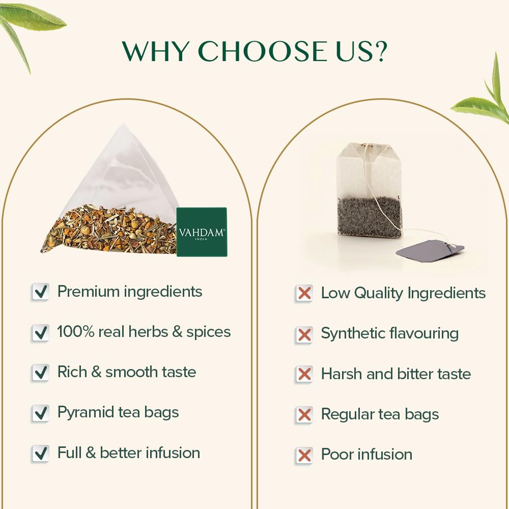 VAHDAM, Turmeric Chamomile Tea Bags (100 Herbal Tea Bags) Caffeine Free,100% Pure Herbal Tisane - Warm, Earthy & Floral | Infused With Chamomile Flowers | Resealable Ziplock Pouch