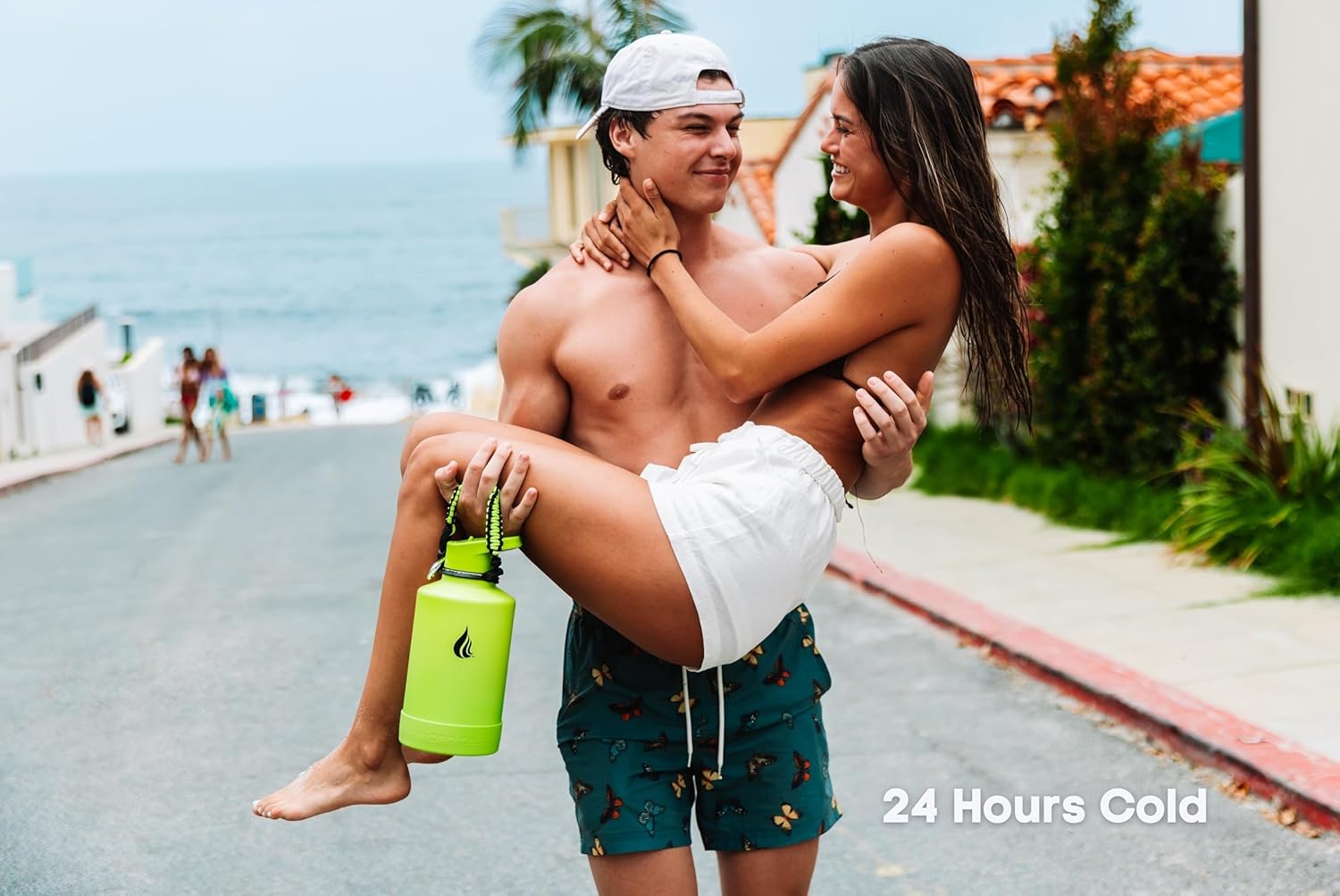 HYDRO CELL Stainless Steel Insulated Water Bottle with Straw - For Cold & Hot Drinks - Metal Vacuum Flask with Screw Cap and Modern Leakproof Sport Thermos for Adults (Neon 64oz)