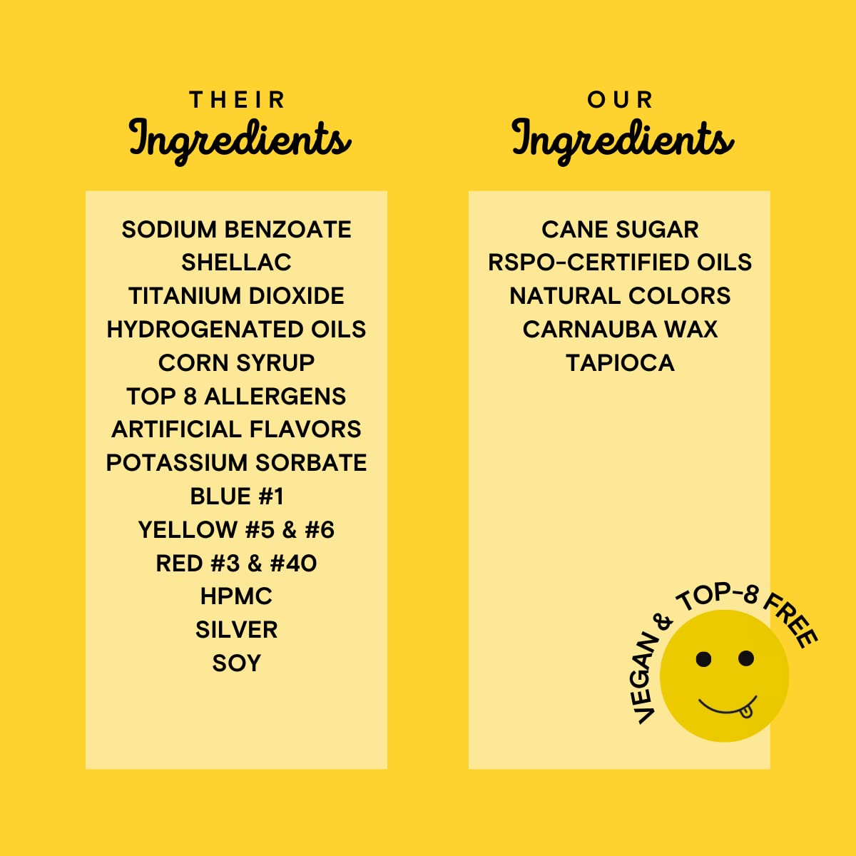 - NO CONFECTIONER'S GLAZE: Did you know most sprinkles get their shine from bug goop? We keep it vegan with a formula that's friendly to all creatures, big and small.