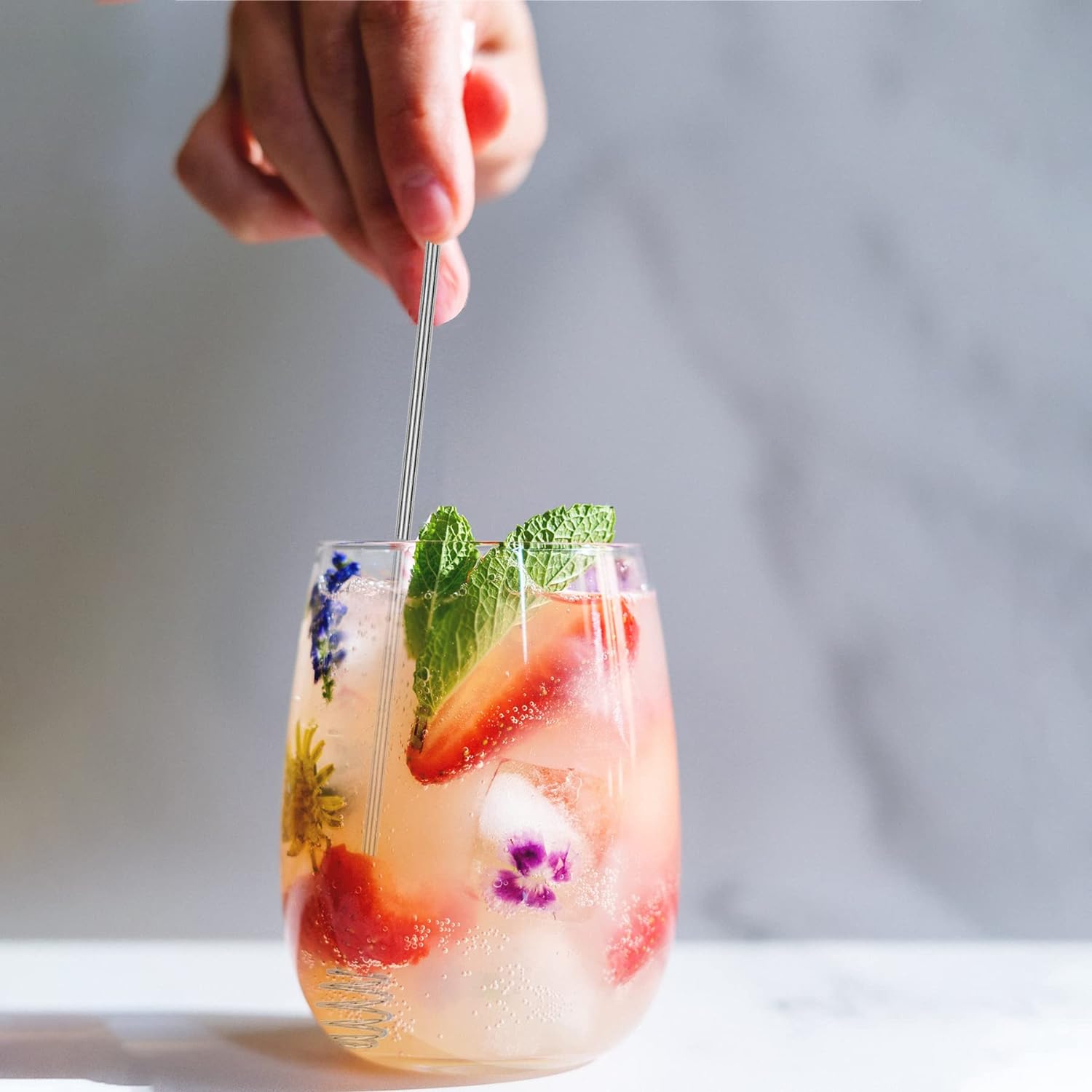 - - Spherical Design: The hollow ball type is designed with a squeeze type for quick mixing. For example, there is lemon in the drink, which can easily squeeze out the lemon juice. Solid ball type is convenient for narrow bottle mixing