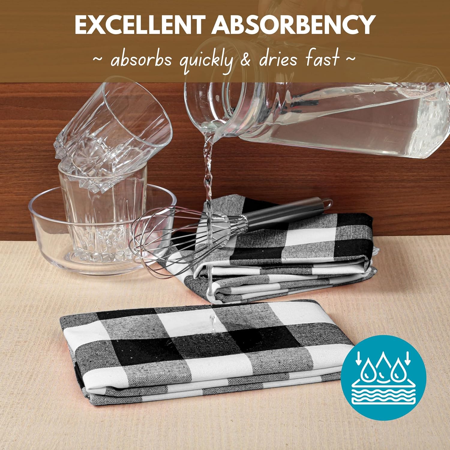 Native Fab 12-Pack Kitchen Towel with Hanging Loop 16x26 inches, Cotton Buffalo Check Kitchen Towels for Cleaning Drying, Washcloths Soft & Absorbent Cloth Rags, Bar Towel, Dish Cloth, Black