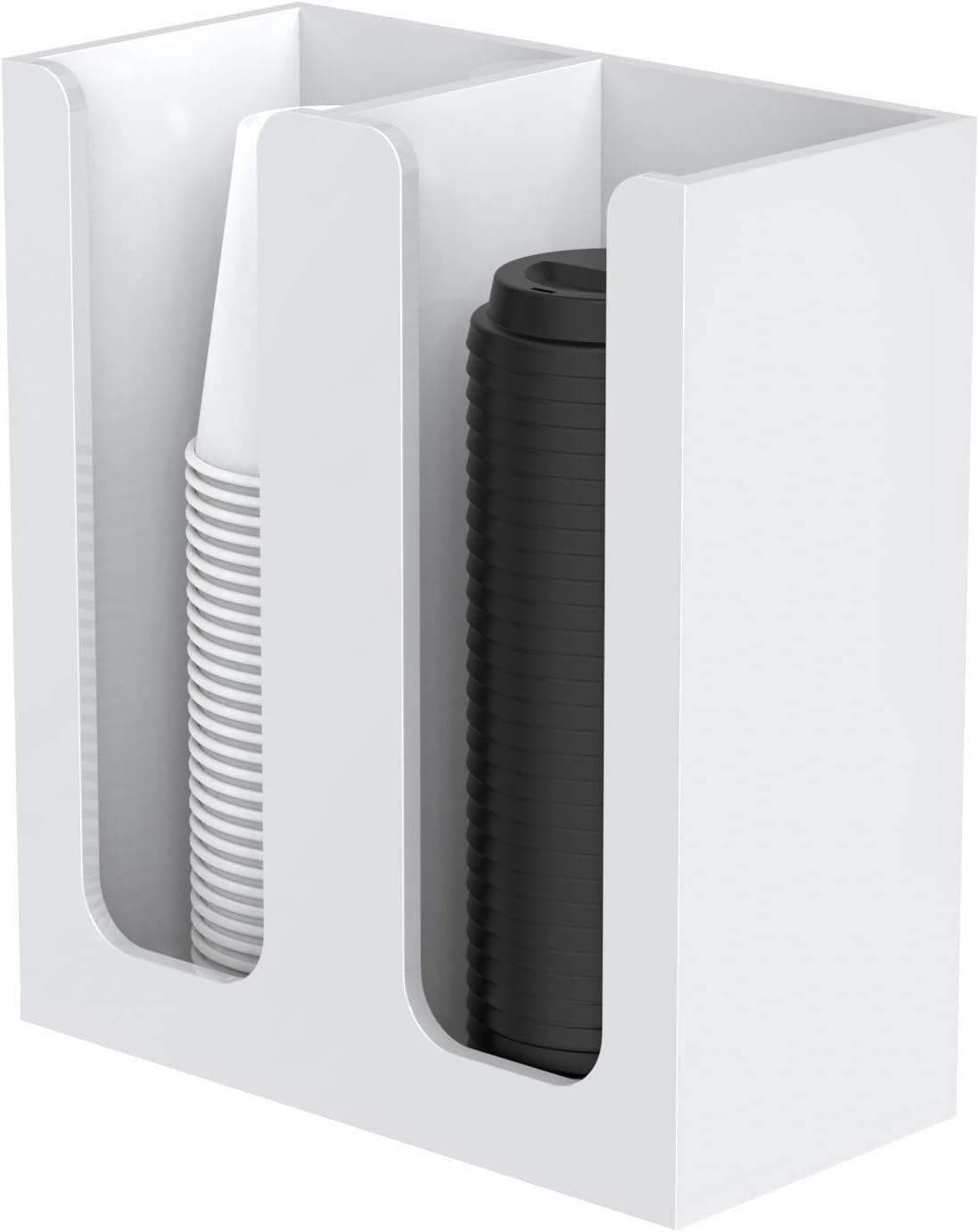 Richboom Acrylic Coffee Cup and Lid Storage Organizer Holder, 2 Compartments, White