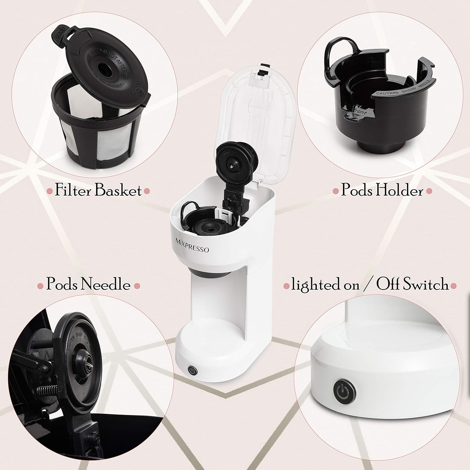 - Best Pod Coffee Maker: The single coffee maker is designed for easy cleaning, compact storage, and made from environmentally safe materials. The removable drip tray allows quick cleanup, while the detachable ground coffee filter can be easily removed for fast daily rinsing. For thorough cleaning, parts can be disassembled as needed to help maintain long-term performance.