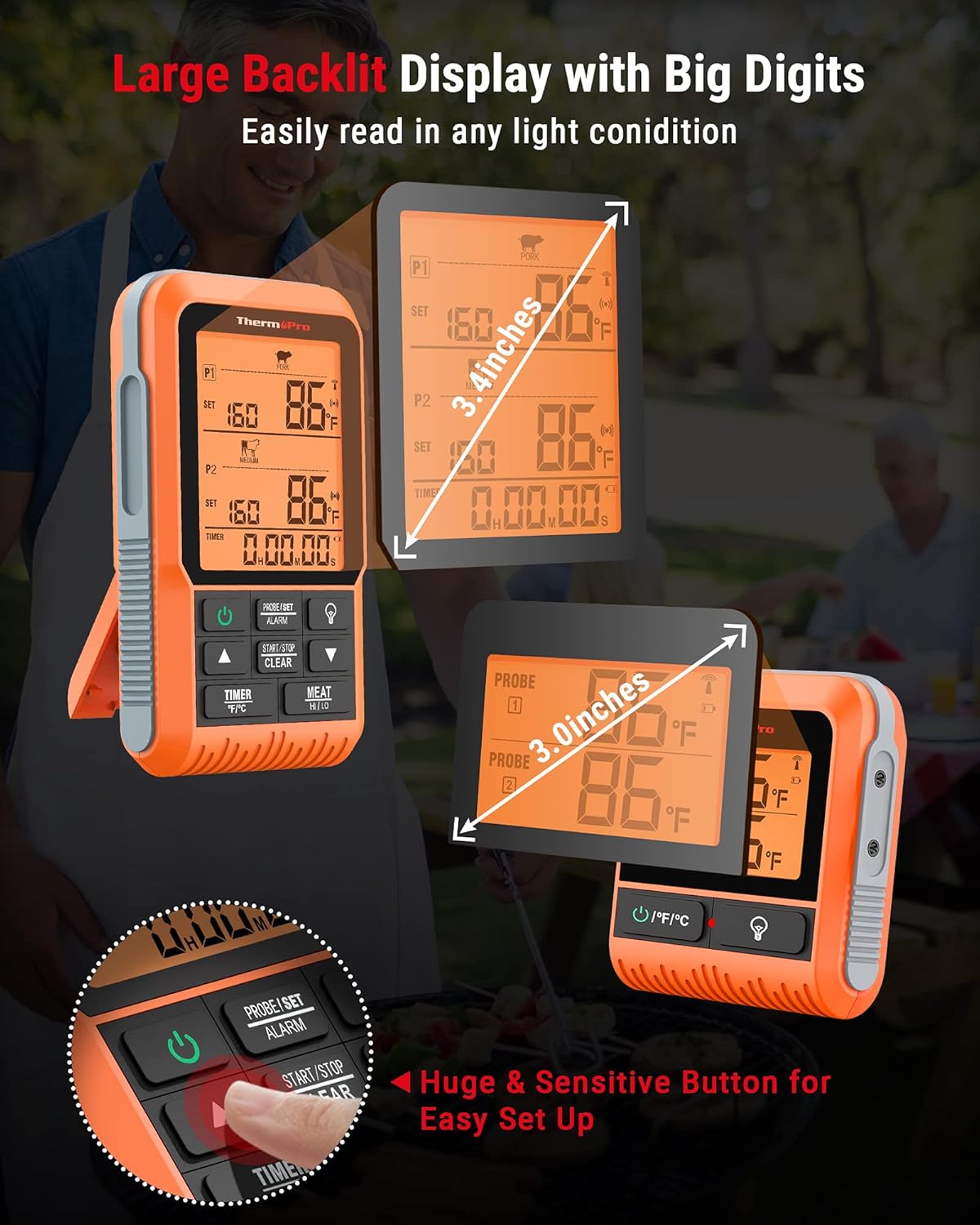 - Smart Alerts & Timer: Always get informed by viewing temp and timer simultaneously on our outdoor fryer thermometer; Once it reaches your preset temperature, the turkey fryer thermometer will beep and flash to ensure restautant quality meal