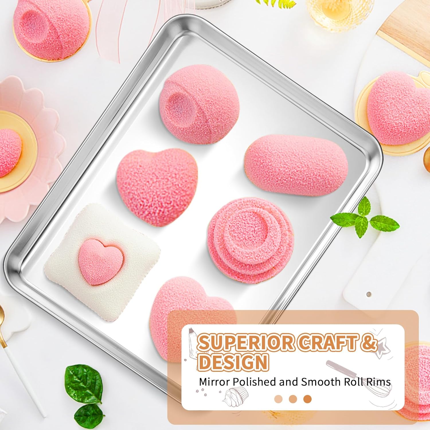 - 🍅 𝐒𝐔𝐁𝐒𝐓𝐀𝐍𝐓𝐈𝐀𝐋 & 𝐃𝐔𝐑𝐀𝐁𝐋𝐄: Our stainless cookie sheet set features its solid construction and feel sturdy enough when holding in hands, nice weight to cook with, rust resistant, high hardness, no distortion, no worries about bending, durable to use for years.