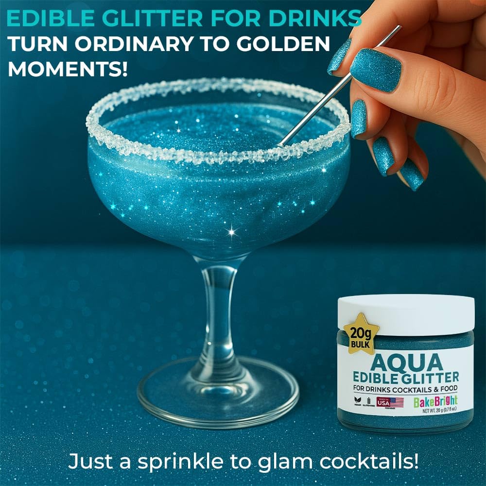 Bulk 20g Light Blue Edible Glitter for Drinks | Premium Edible Glitter for Cakes, Cocktails, Light Blue Cake Decorating Decorations Food Grade, Vegan, Kosher, Halal, Gluten Free - Made in USA