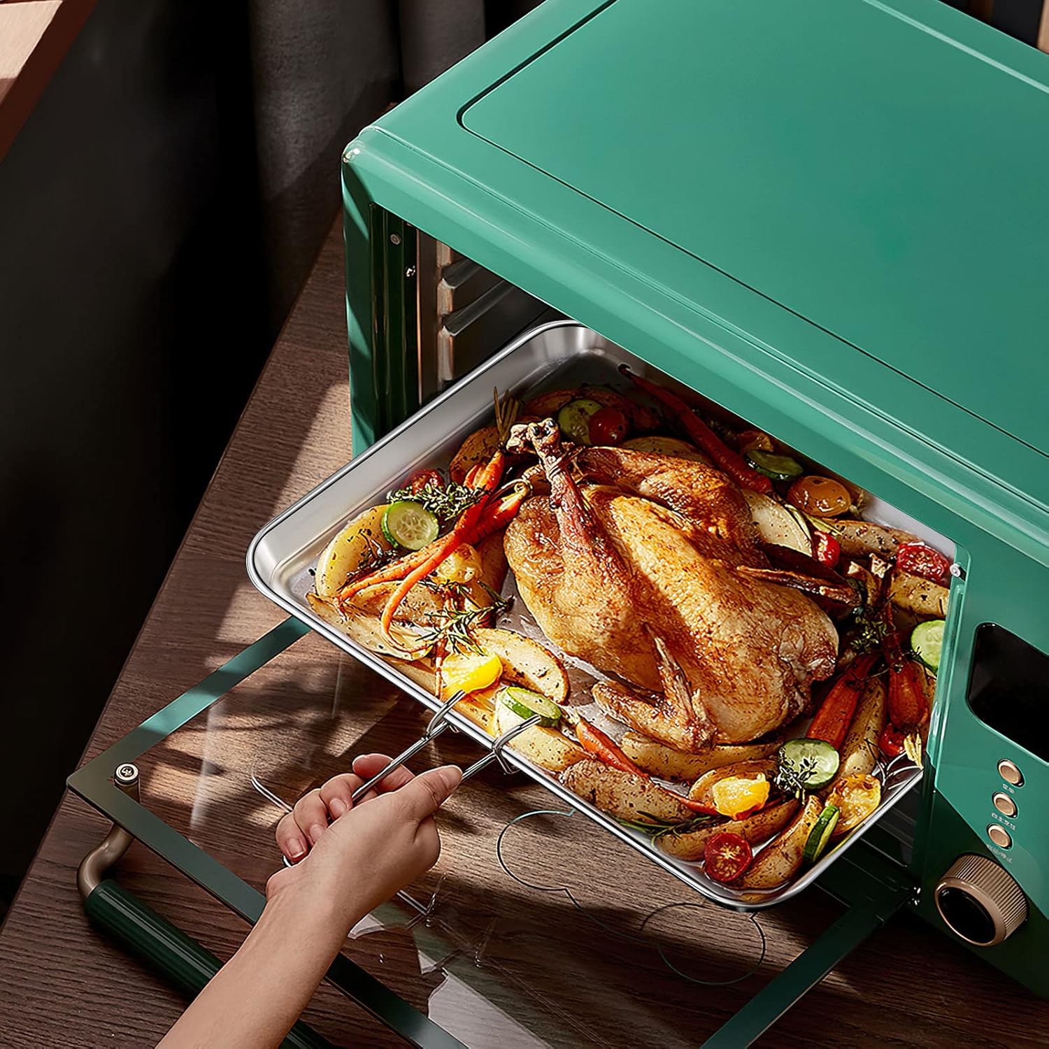 - 🍦 [VERSATILE BAKEWARE KIT] The oven pans and baking racks are great for using separately or together. Perfect for baking cookies, breads, bacon, steaks, vegetables, ribs, chicken wings, drumsticks, brownies, pizza and more. The wire racks fit perfectly inside the pan to avoid foods falling through, weld firmly with dense parallel lines allow fast and even air circulation for baking or cooling.
