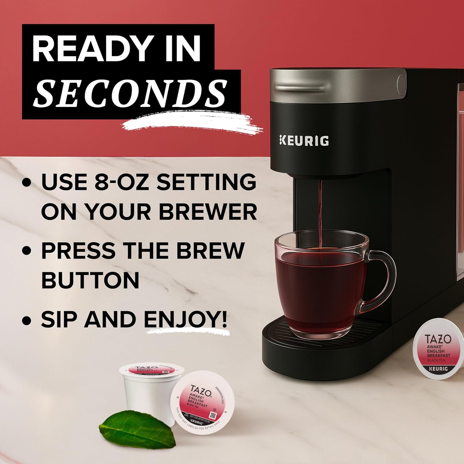 - CONVENIENT & VERSATILE: Use the TAZO Keurig tea pods to make breakfast tea or an afternoon pick-me-up; TAZO black tea contains 75+ mg of caffeine per 8 fl oz serving and is best enjoyed hot