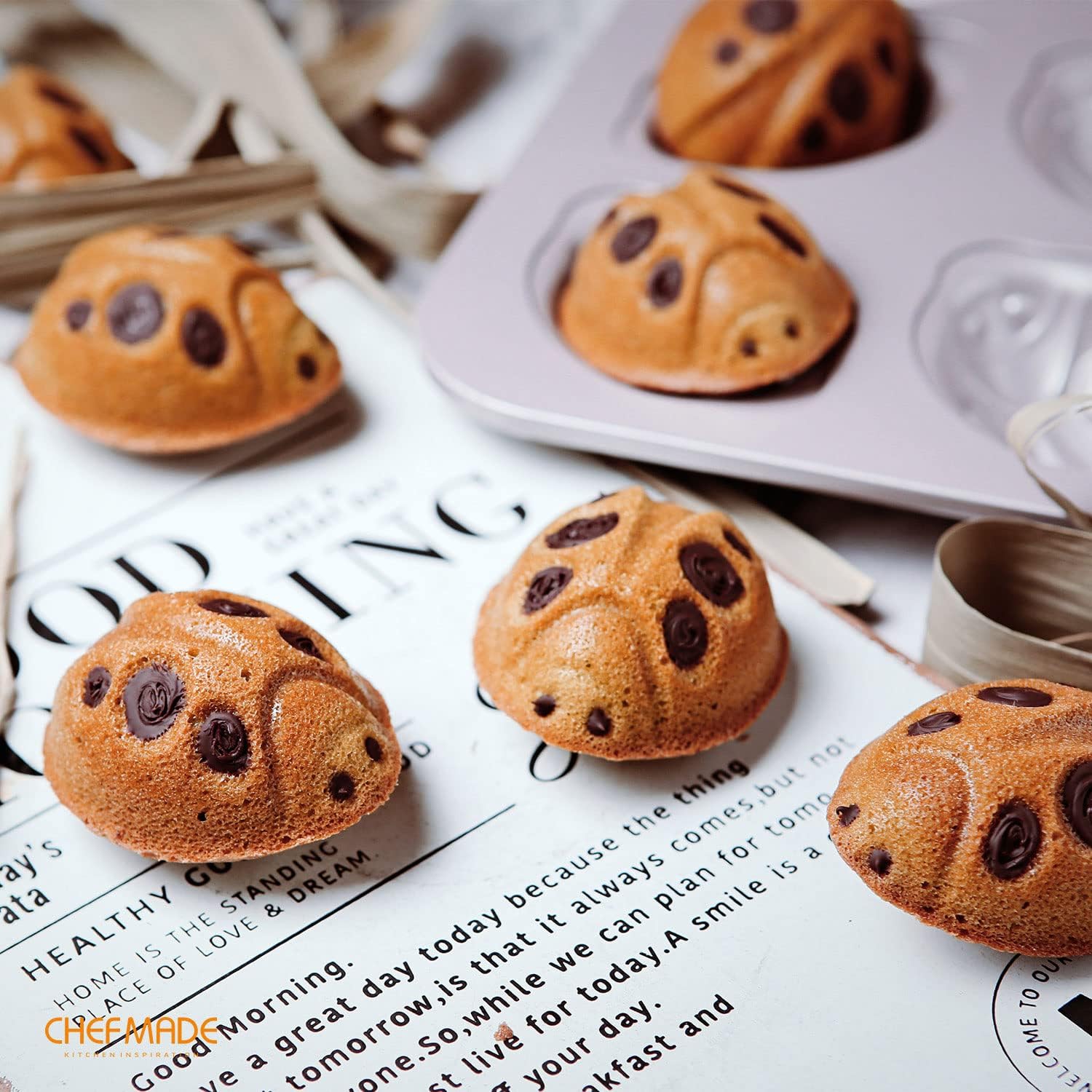 CHEFMADE Beetle Cake Pan, 12-Cavity Non-Stick Animal Muffin Bakeware for Oven Baking (Champagne Gold)