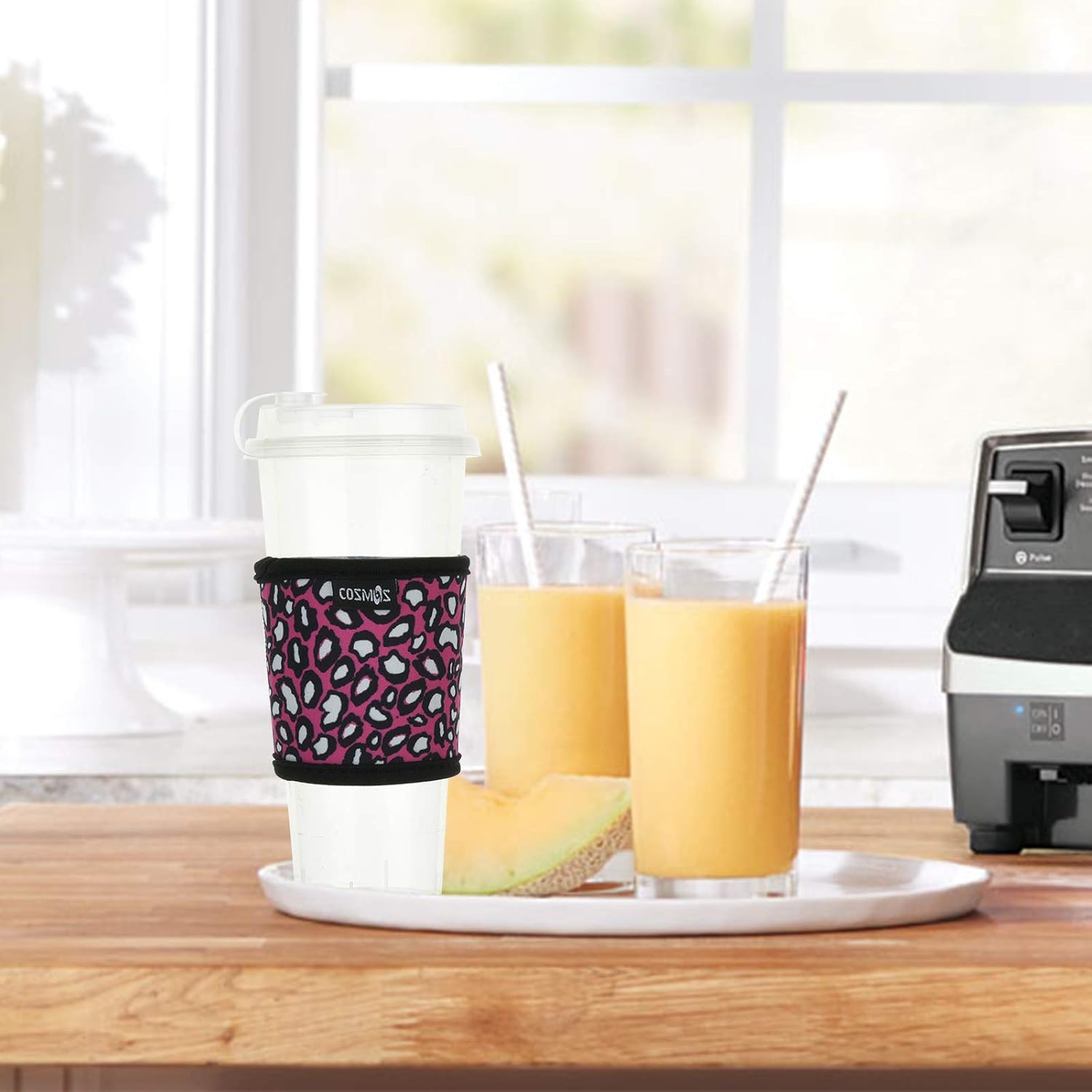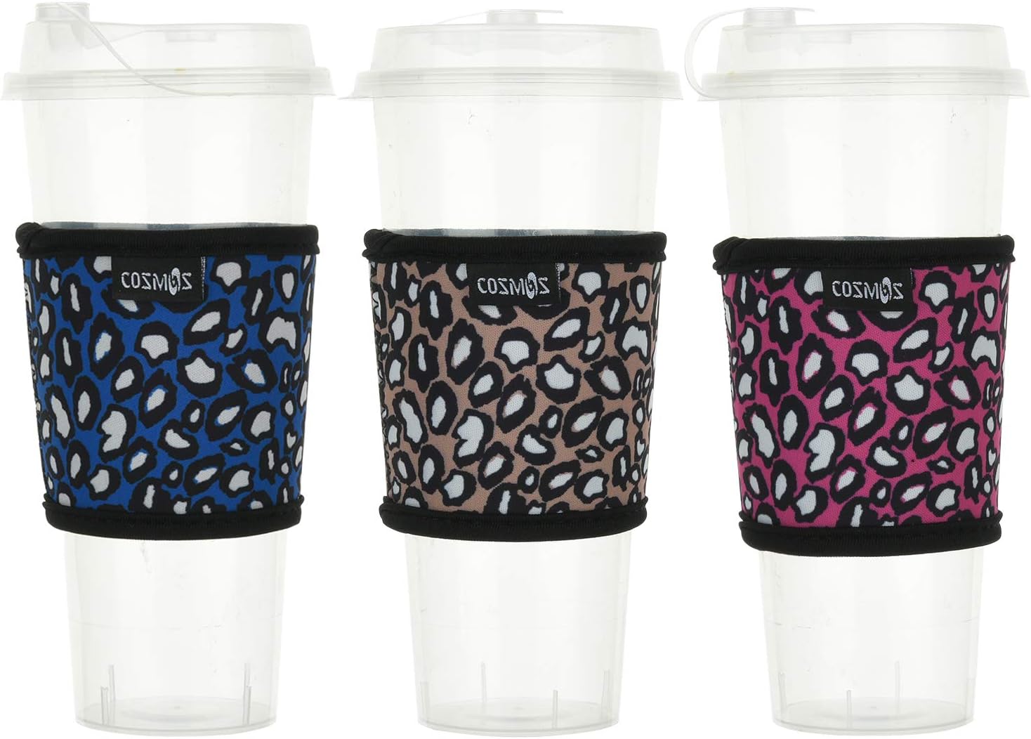 CM Reusable Coffee Mug Sleeve Cover Heat Resistant Neoprene Insulator Sleeve for Coffee Tea Hot Cold Beverage (Leo Print Patterns - Blue, Pink, Kakki - Pack of 3)