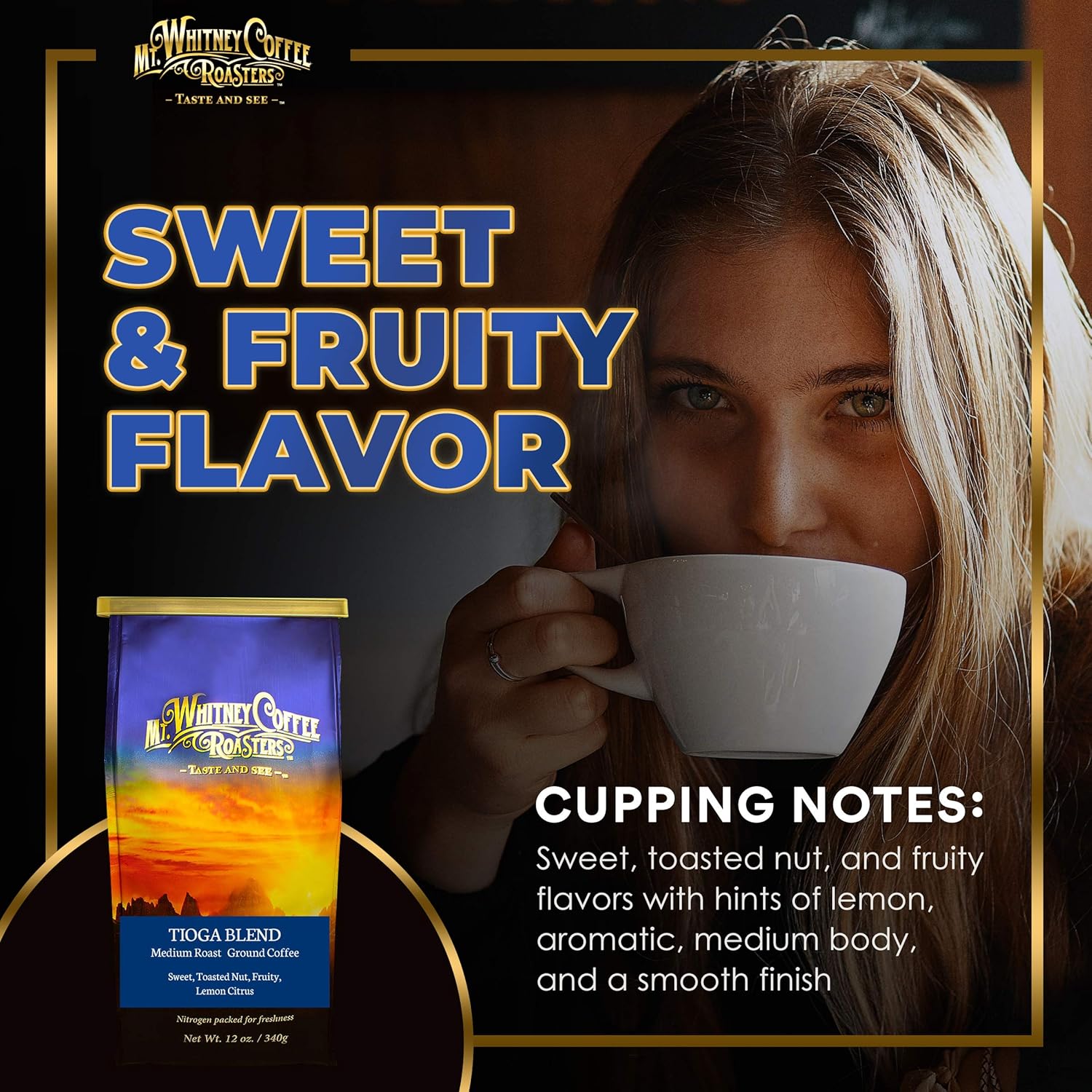 - SWEET AND FRUITY FLAVOR - Aromatic, medium bodied, with a smooth finish. Our Tioga Blend ground coffee boasts of sweet, toasted nut, and fruity flavors with notes of lemon citrus.