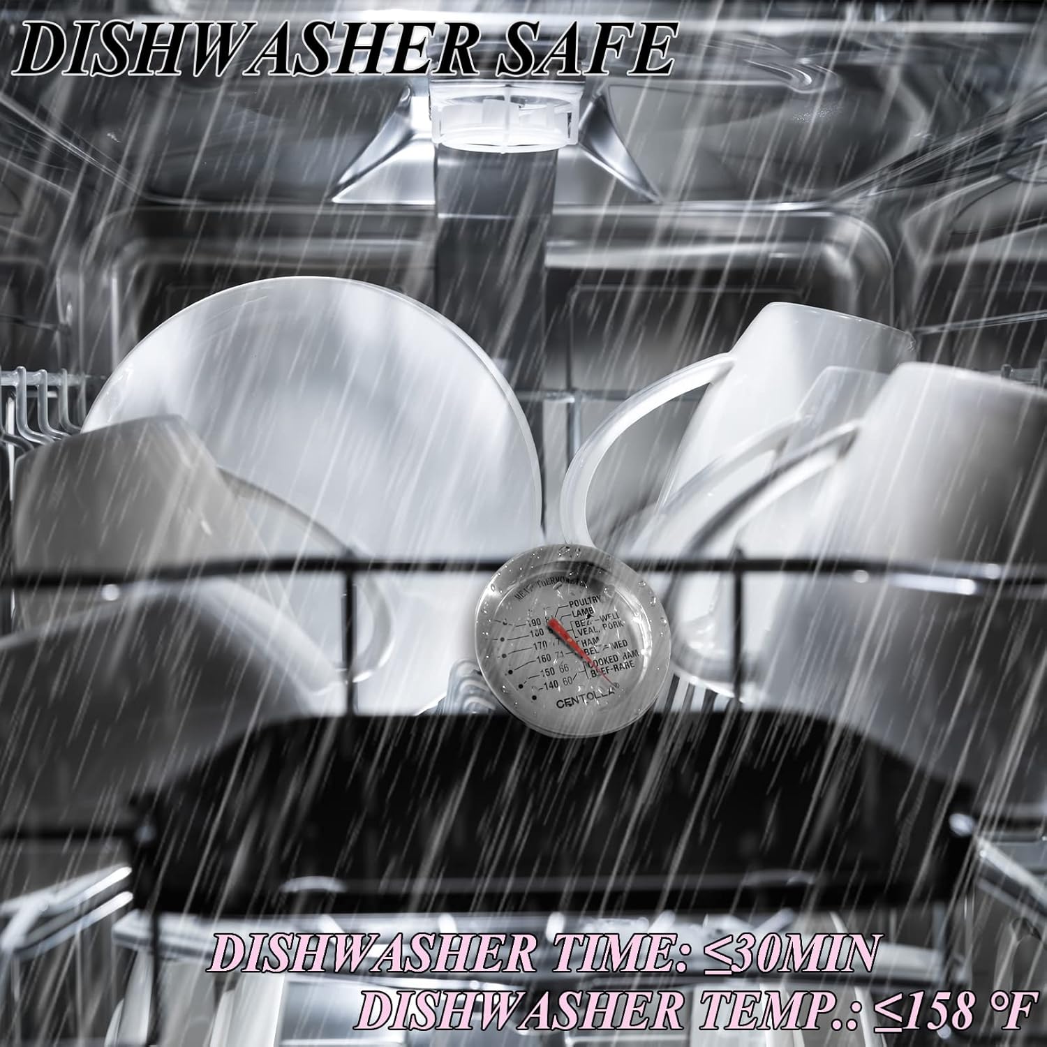 - Notes: Although this oven thermometer is dishwasher safe, but DO NOT immerse this in water. NOT Suitable for Microwave.
