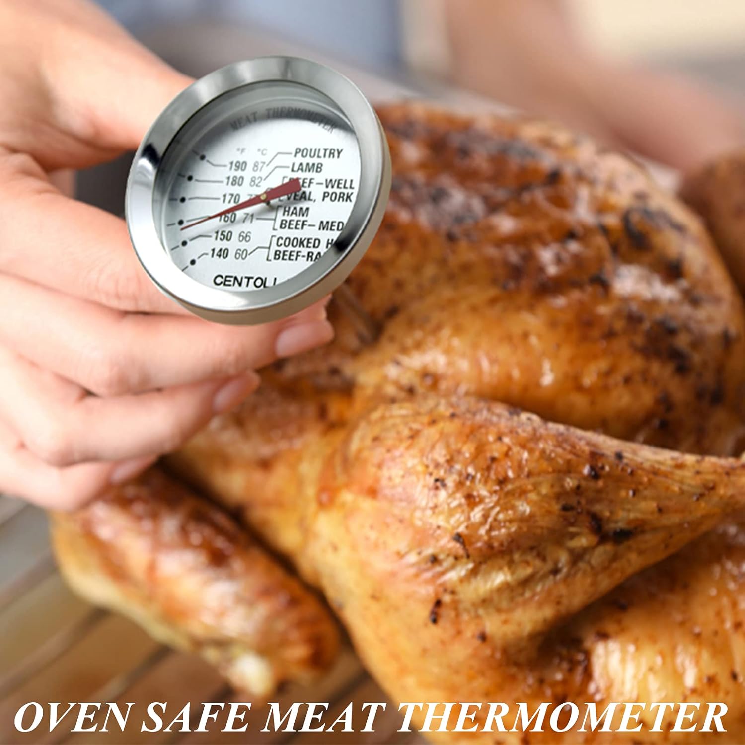- MEAT THERMOMETER OVEN SAFE: Well made by premium stainless steel and shatterproof lens, CENTOLLA food thermometer is highly durable and dependable.