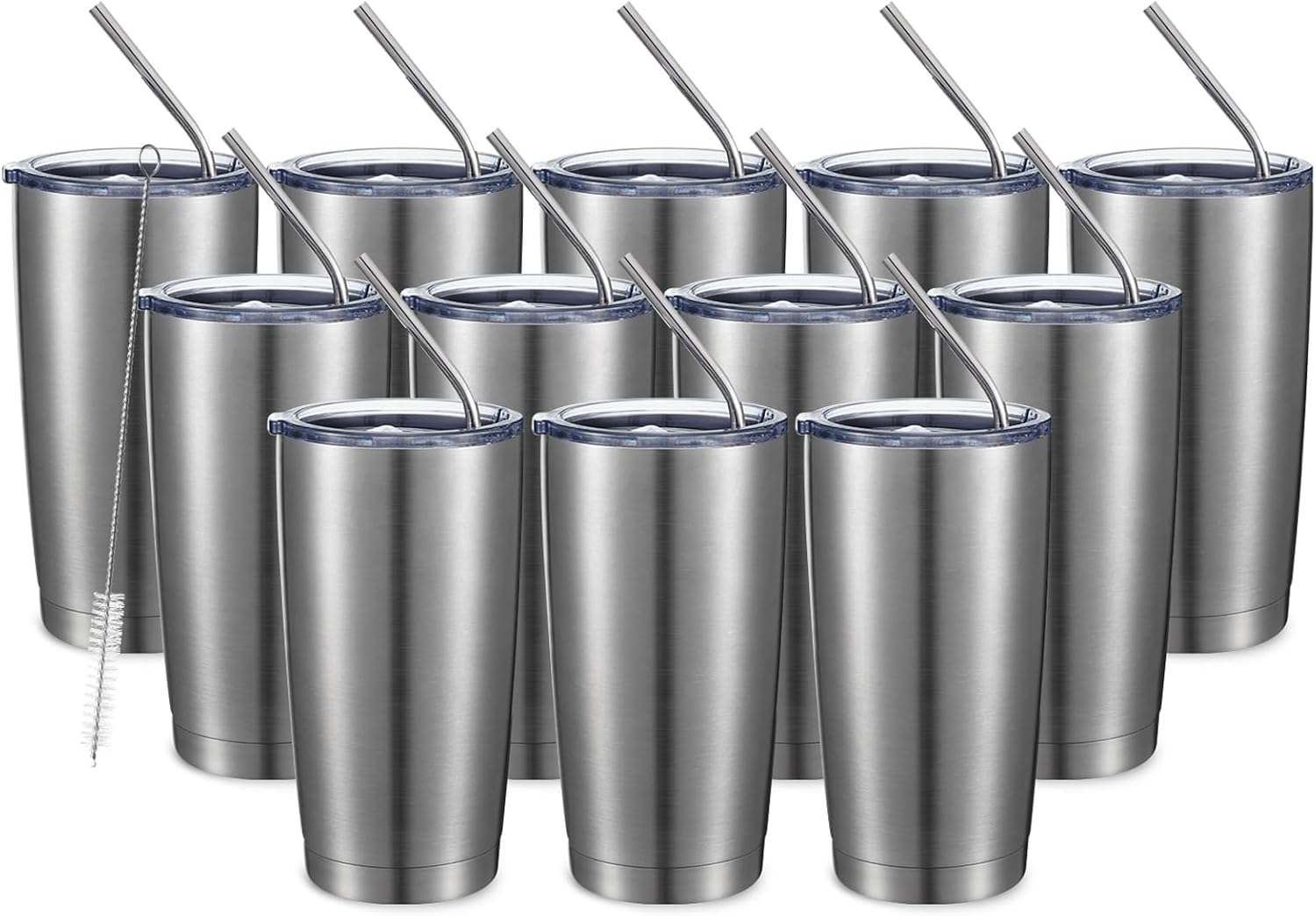 - [Exclusive Bonus Bundle]12*20 oz tumbler with splash-proof slide lid, 12*straw,6*straw brush. The lid is splash-proof and perfect for office, school, trip and picnic. The great value tumbler suit will save your time and money