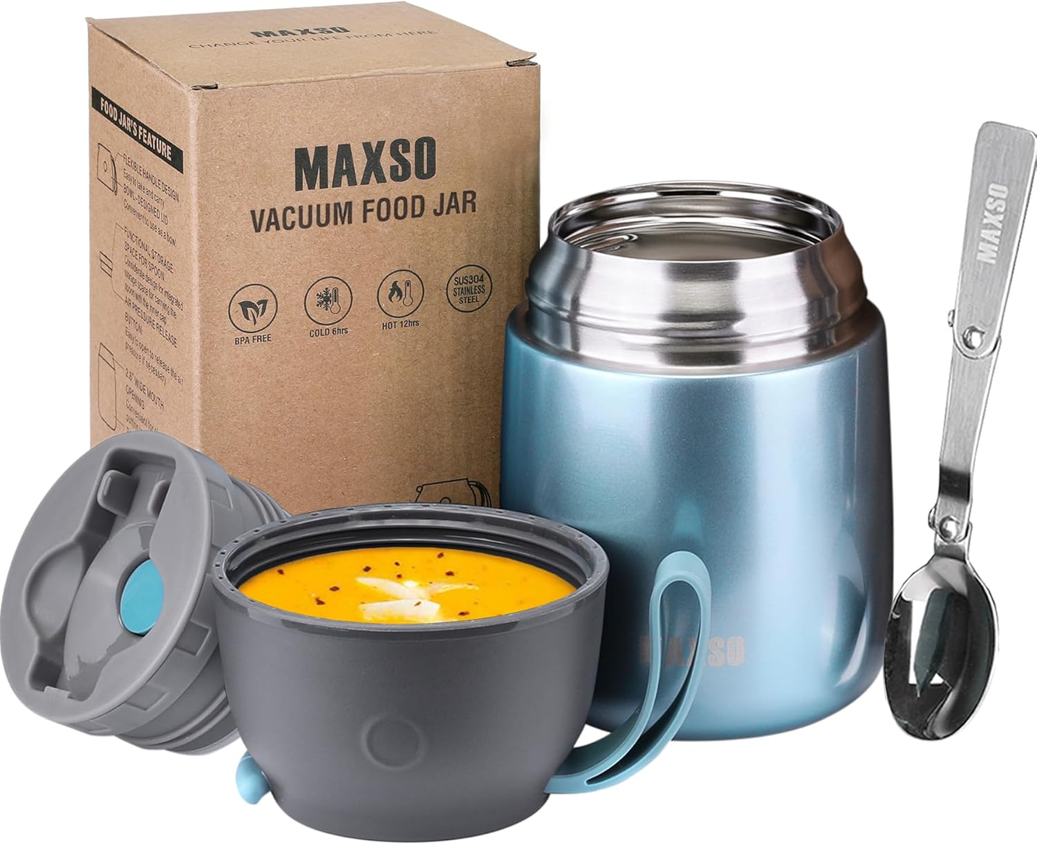 - 【Attractive & Practical Insulated Food Container】It takes top marks for its superior insulation, 304 stainless steel material, BPA free, no PVC, 17oz capacitie and a versatile design that works for toddlers, kids and adults. Use this Insulated food container for hot / cold foods such as pasta, soup, chili or milkshake. It keeps food warm for about 12 hrs and cold for 24 hrs. With our Insulated lunch container, you will never have to endure cold lunches and salads in winter!