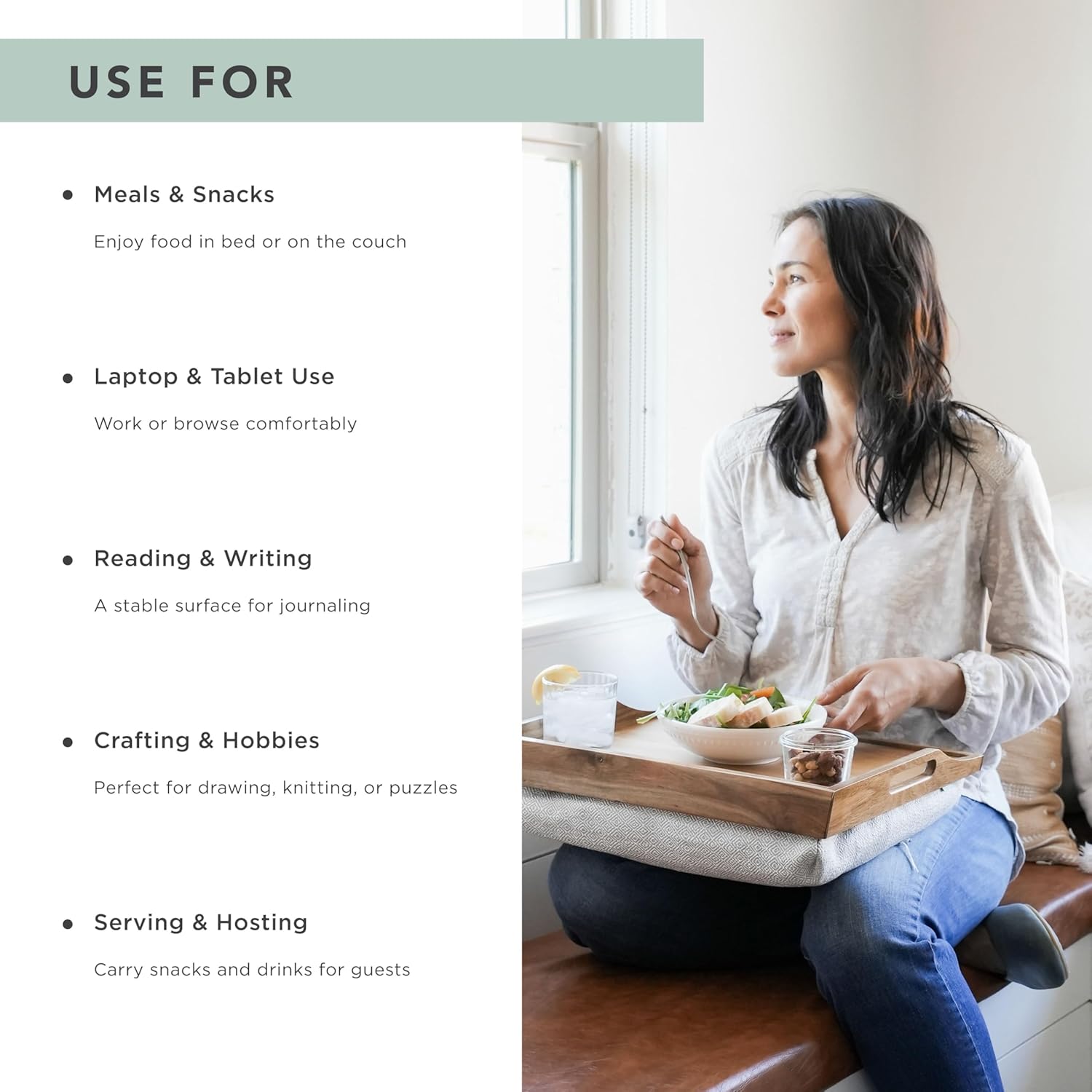 - Dual-Use Design: Use it as a lap desk with the cushion attached, or remove the cushion to convert it into a serving tray.