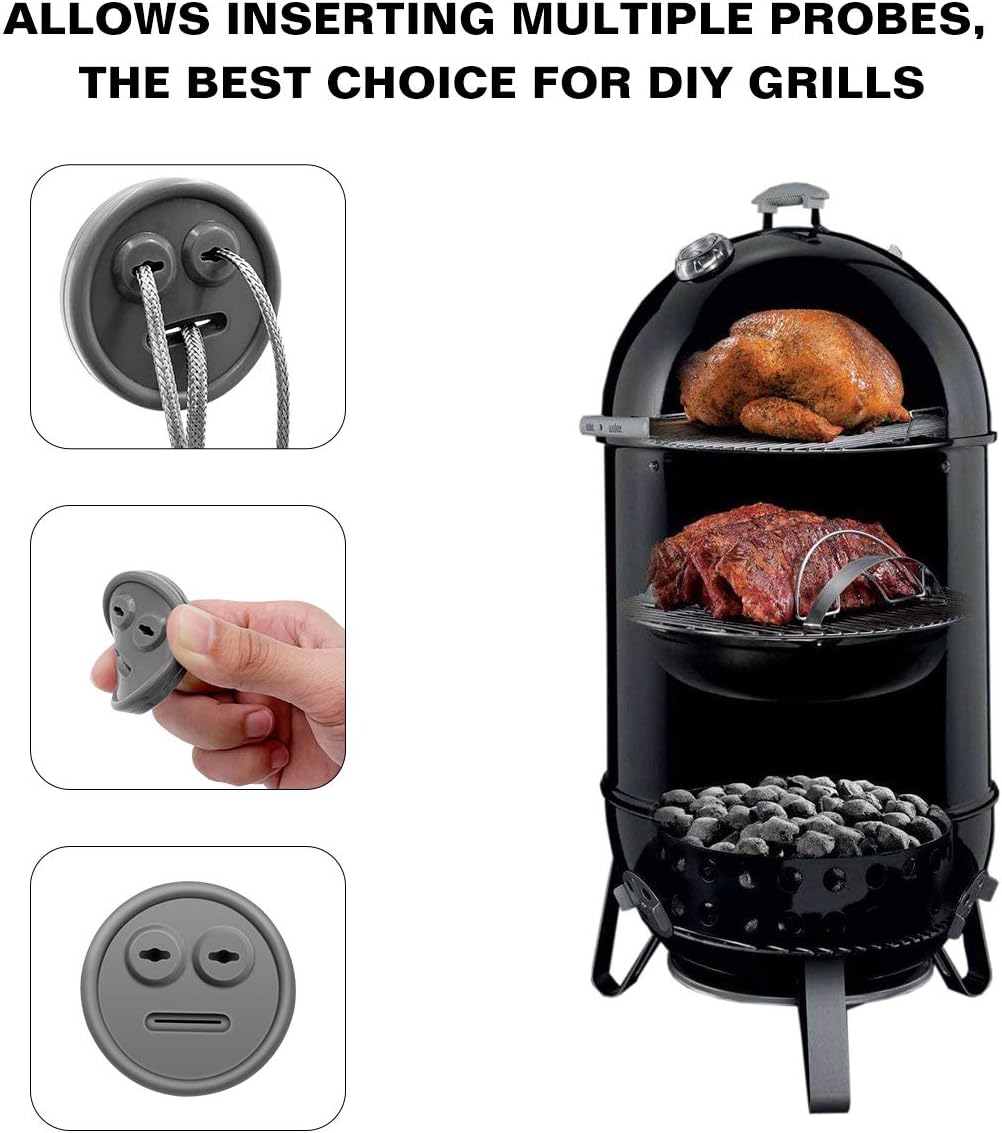 5 Pack Meat Thermometer Probe Grommet for Grills, Compatible with Weber 85037 Smokey Mountain Cookers, and Other Grill DIY Probes Port, Replacement Accessories